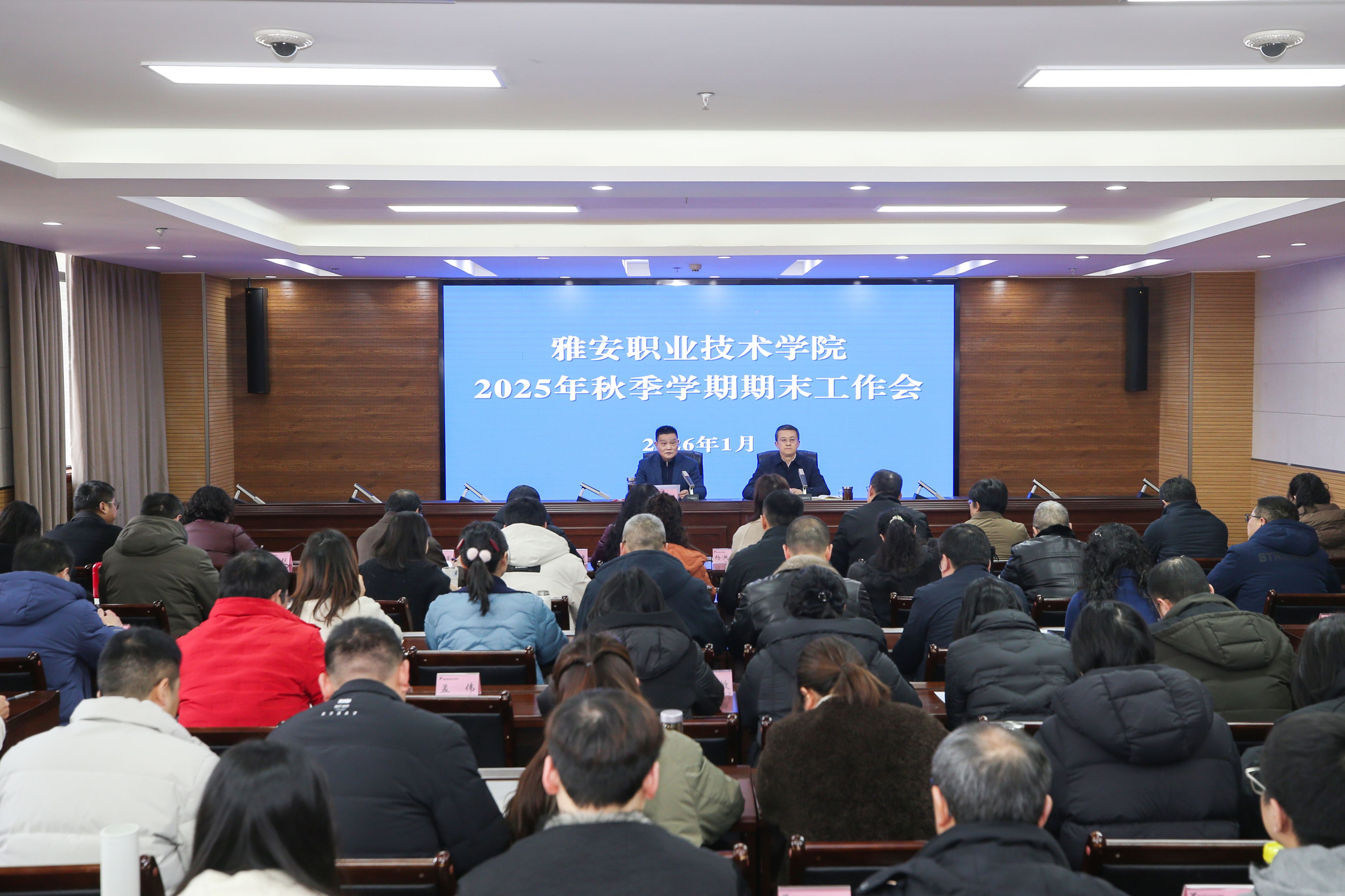 1月26日下午,beat365在经开区校区综合楼311会议室召开2025年秋季学期期末工作会。党委书记李春模主持会议并作总结讲话,党委副书记、校长黄诚全面总结秋季学期工作成效并部署下一阶段重点任务。全体党政班子成员、中层及以上干部,产业学院、资产公司负责人参加会议。