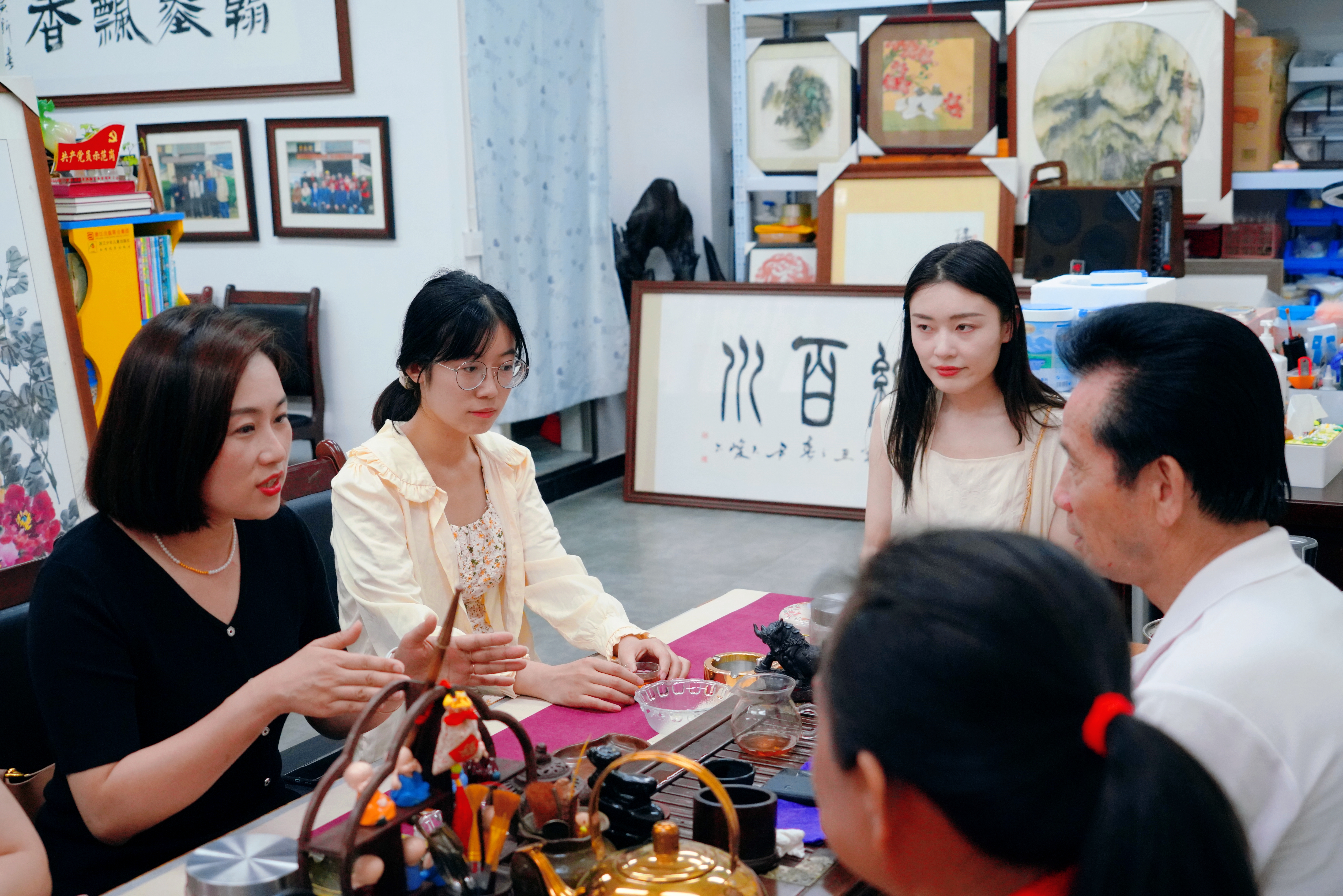雅安市文联副秘书长、书香龙溪创始人余志均带领一行人员先后参观了书香龙溪文化艺术服务中心书画作品展、童美艺术培训基地、图书室、书法室、文化荣誉墙等地,并介绍书香龙溪近年来开展的美育实践和志愿活动情况。叶芋伶从学院美育体系建设、志愿服务及社会实践基地拓展、社团品牌活动等方面进行介绍。双方围绕创新合作模式,拓展育人平台,持续完善校社共建育人基地长效机制进行深入交流。