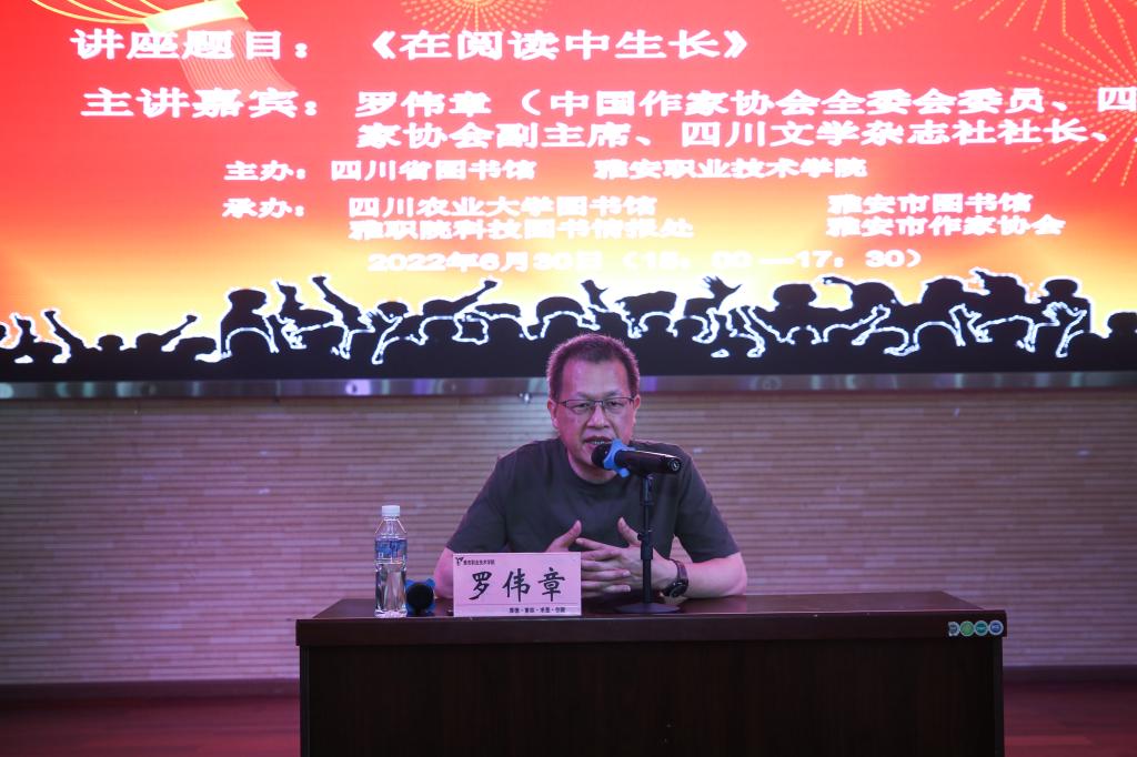 6月30日下午,由四川省图书馆、学院主办的“成渝经济文化大讲堂”第四期在beat365在线唯一官网青年路校区汇雅厅举行。讲座由中国作家协会全委会委员、四川省作家协会副主席、《四川文学》杂志社社长、《四川文学》主编罗伟章先生主讲,学院党委委员、宣传统战部部长郭英才主持了此次讲座。雅安市图书馆、雅安市作家协会、雨城区作家协会等单位代表以及学院三百余名师生参加了讲座。
