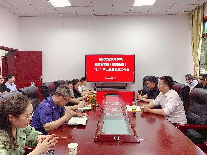6月1日17时00分,雅安市芦山县发生6.1级地震,临床医学院(附属医院)按照上级部署要求,立即启动突发事件应急预案,全体班子成员迅速集结,相关职能部门负责人及应急救援队员迅速到位,积极开展育才路校区及医院院区地震应急系列工作。