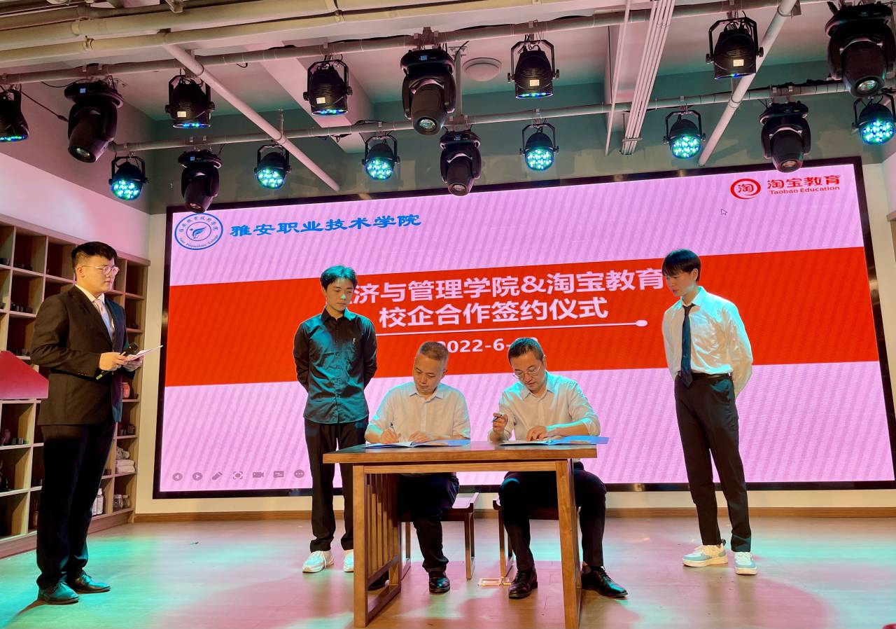 6月2日下午3:00,经济与管理学院与淘宝教育在茶创空间签订了校企合作协议,并举办了直播电商培训结业典礼。