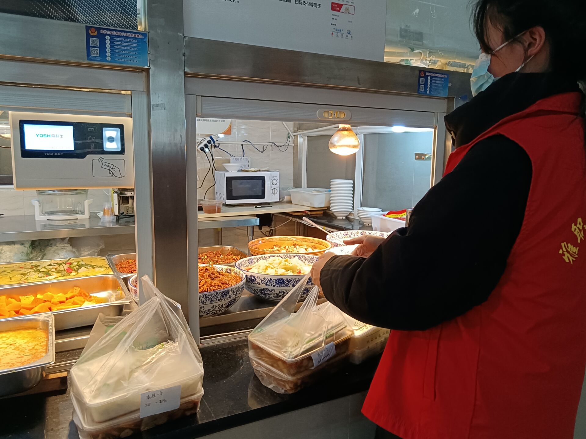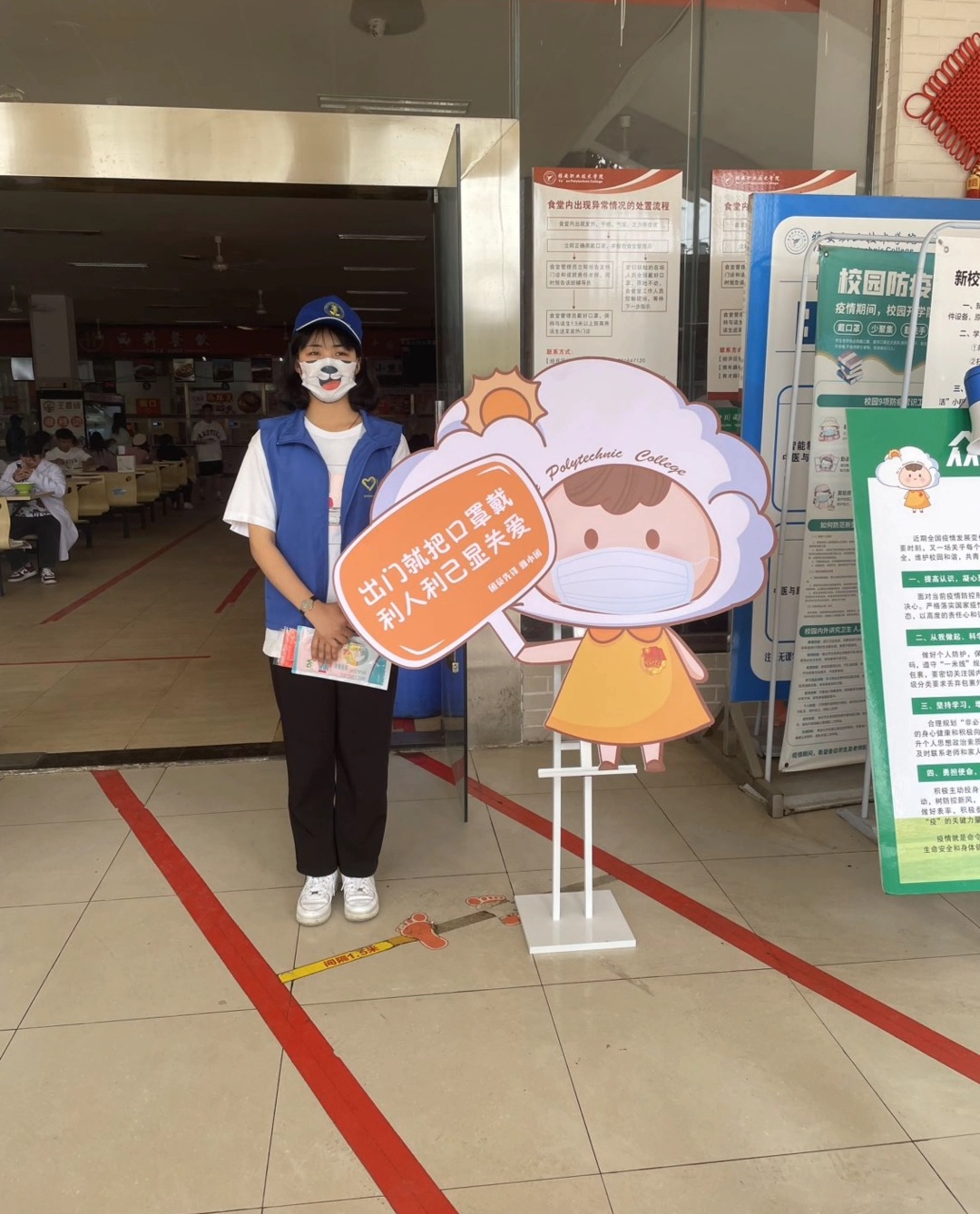 主动作为勇担当。“疫情就是命令,防控就是责任,我是团员我先上。”学生志愿者曾权利在快递点值守的同时积极宣传科学防疫知识。“请大家打开天府健康码,并扫码测温进入......”为缓解上下班高峰期校门拥堵,志愿者手举场所码,穿梭在人流和车队中,提醒师生有序扫码测温入校。志愿者们在教学区、实训楼、校门、食堂、寝室、外卖点等重点区域开展文明劝导,为寝室留观同学送餐,积极投身学校疫情防控。