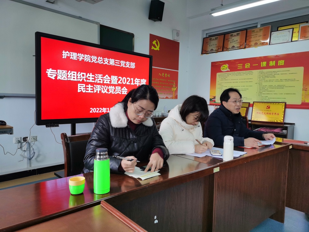 1月4日上午,护理学院第三党支部在青年校区实训楼607党员活动室开展专题组织生活会暨2021年民主评议党员会,支部全体党员参加了会议,师范学院党总支书记冯良亮同志到会督导。会议由党支部书记万黎同志主持。