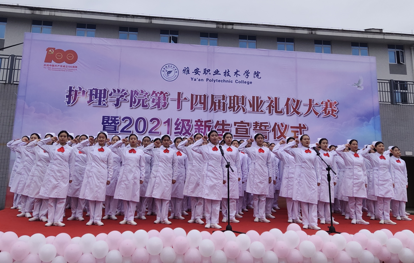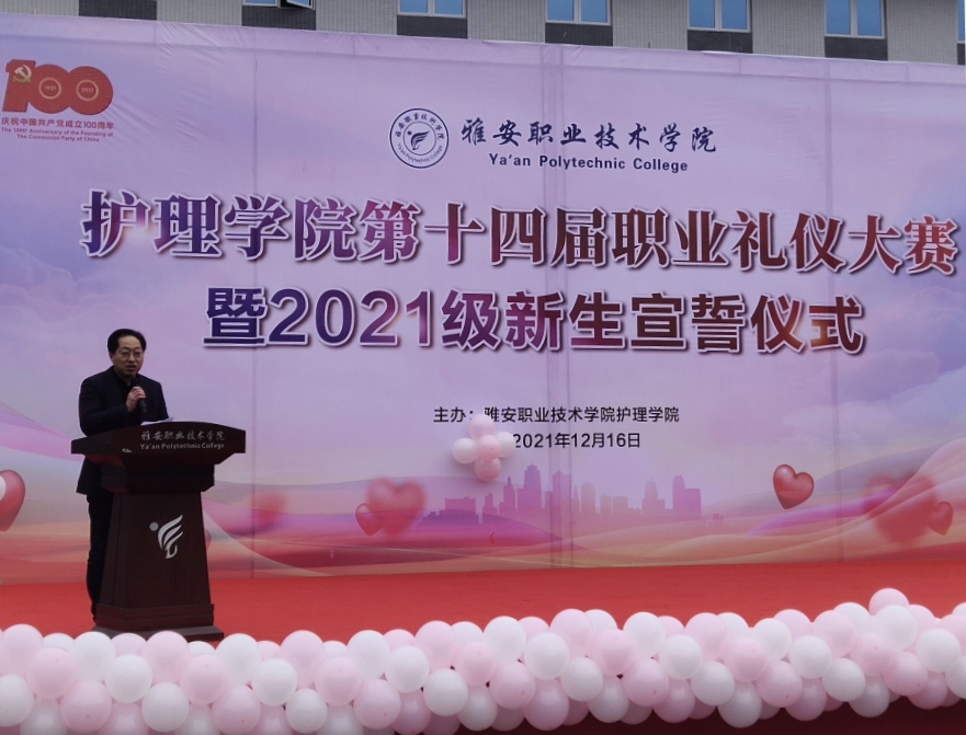 12月16日,护理学院第十四届护理礼仪大赛暨护理新生宣誓仪式在青年路校区足球场隆重举行。护理学院党总支书记杨泽刚,院长王静,党总支副书记张翅,副院长李婧、张雪庆,团总支书记万黎应邀出席。陈俊、袁素华等7位教师担任评委。