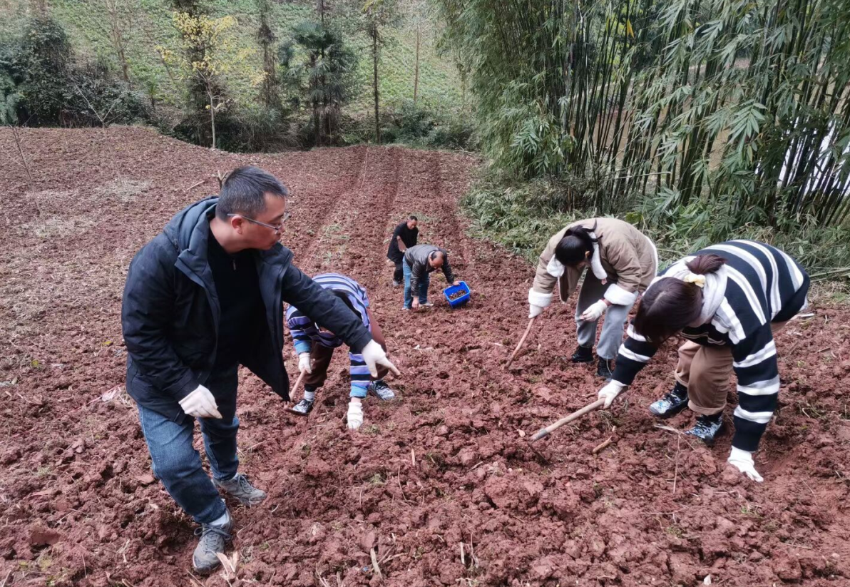 12月19日,药学与检验学院教师刘德军带领中药学2021级3班三名学生来到我院乡村振兴对口帮扶的天全县仁义镇小落村指导中药材黄精种植。
