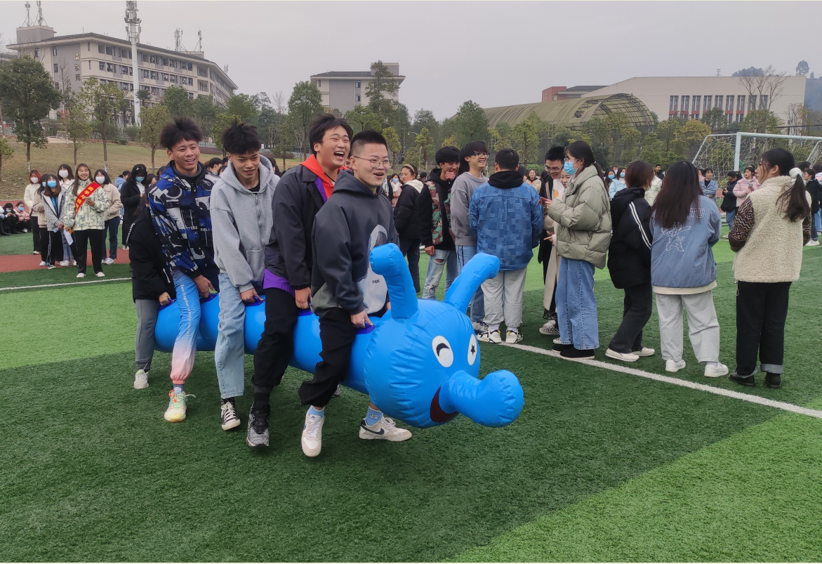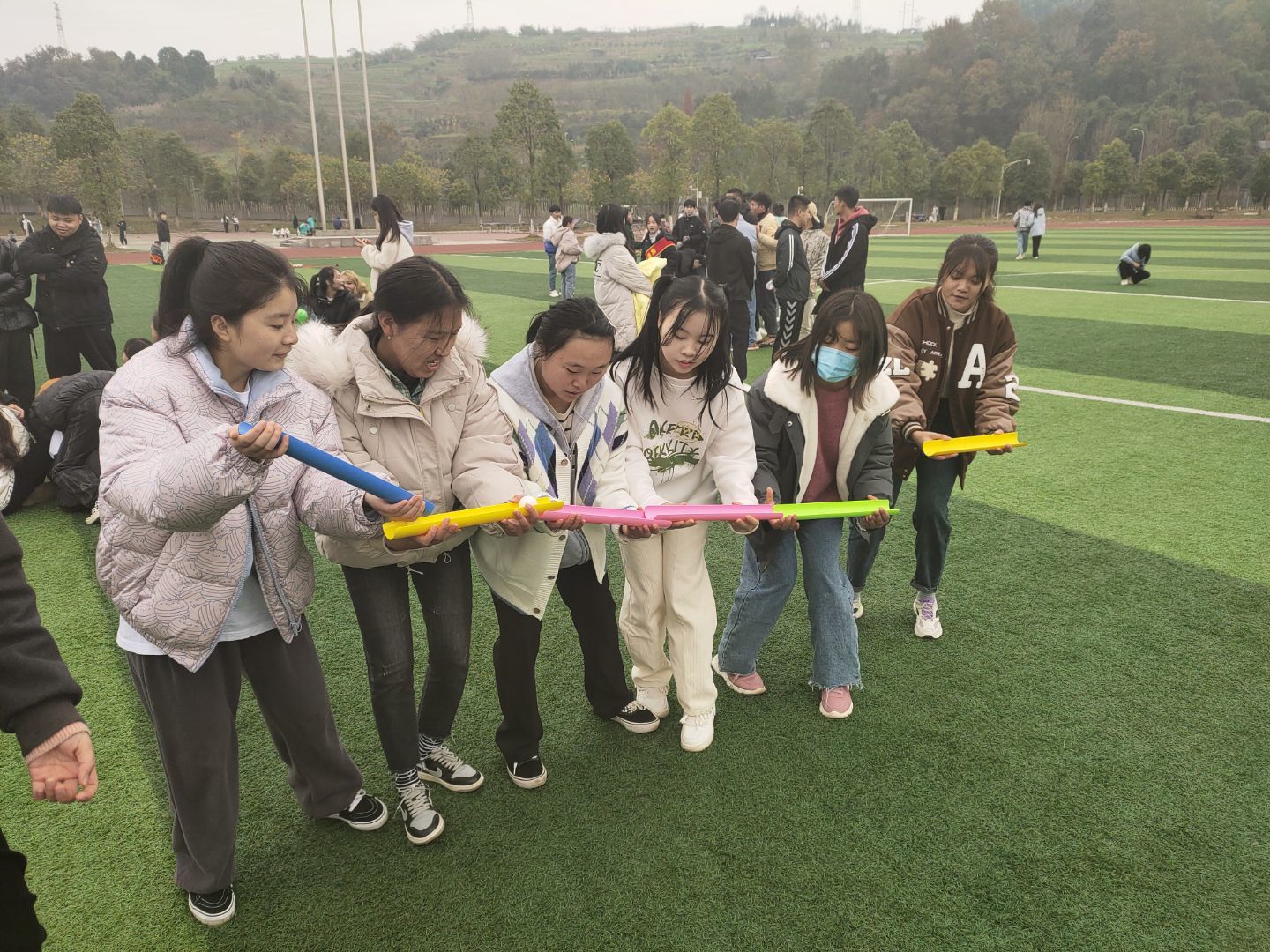 本次运动会共设有“齐心协力过草地” “翻越夹金山” “强渡大渡河” “四渡赤水” “巧夺金沙江”以及“胜利会师”共计六个具有红色长征韵味的活动,共计37支队伍参赛。随着主持人宣布运动项目的比赛规则和裁判员的一声哨响,趣味运动会正式开始!赛场上,参赛队员们个个精神抖擞,“跳、跑、闪、搂、抱、伸、弹......”十八般武艺尽显,运动员们抱着“争取第一,重在参与”的精神,默契配合,享受着每一项趣味比赛带来的身心放松和愉悦。观战的同学们也热情似火,加油声、呐喊声、欢笑声此起彼伏。经过一下午激烈角逐,比赛项目一、二、三等奖最终各自花落有主,自此趣味运动会落下了圆满的帷幕。