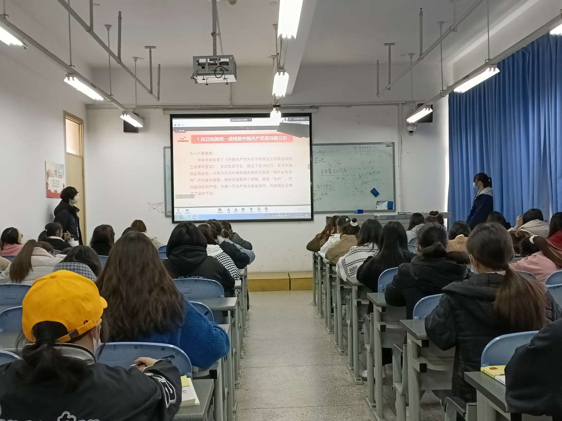 黄焱老师以“中国共产党为什么能”为主题,围绕“中国共产党为什么能建立新中国”“中国共产党为什么能创造社会主义革命和建设的伟大成就”“中国共产党为什么能得到人民的支持”“中国共产党为什么能取得现代化建设的巨大成就”四个方面,以西安事变、皖南事变为例,讲解了在民族内忧外患之际,中国共产党以燎原之势救中华民族于危难之中,找到国家和民族的出路,带领中华民族从站起来、富起来到强起来。她号召雅职青年要有责任担当,以实现中华民族的伟大复兴为己任,不断努力进取,不断开拓创新,增强了作为团员的政治自觉,让远大理想和中国特色社会主义共同理想更加宏阔高远。
