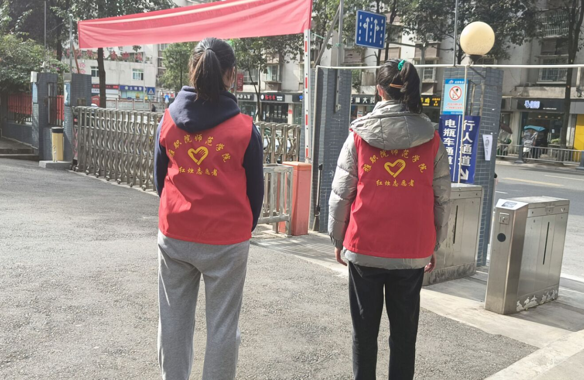 志愿者们还在社区周边主要交通路口进行文明劝导,维护路口行人秩序,提醒市民遵守交通规则。