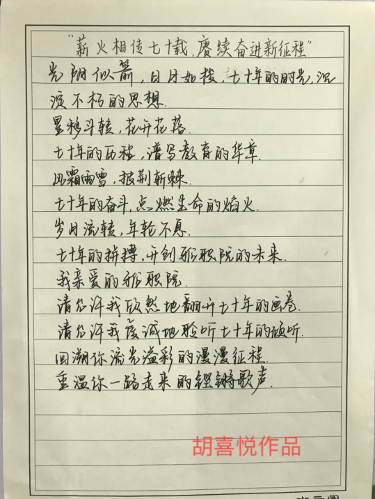 各类作品歌颂和谐美丽的校园,表达了师生对建校70周年的祝贺和对学校未来发展的真诚祝愿。