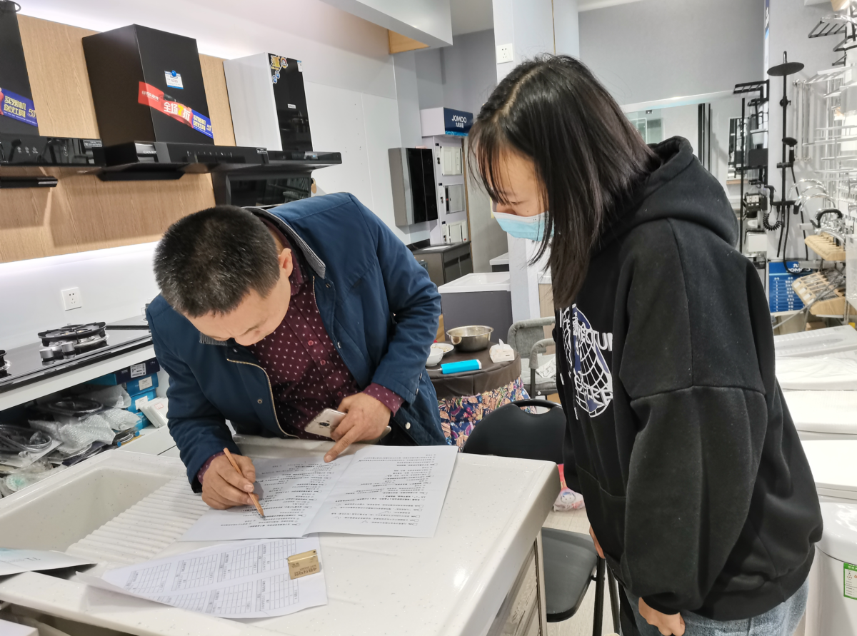 志愿者协同南二路社区医院工作人员,每两人一组上门对社区居民开展问卷调查。志愿者不仅向居民分发《全国居民健康素养监测调查问卷》,而且积极开展健康宣讲,并提出合理化建议。