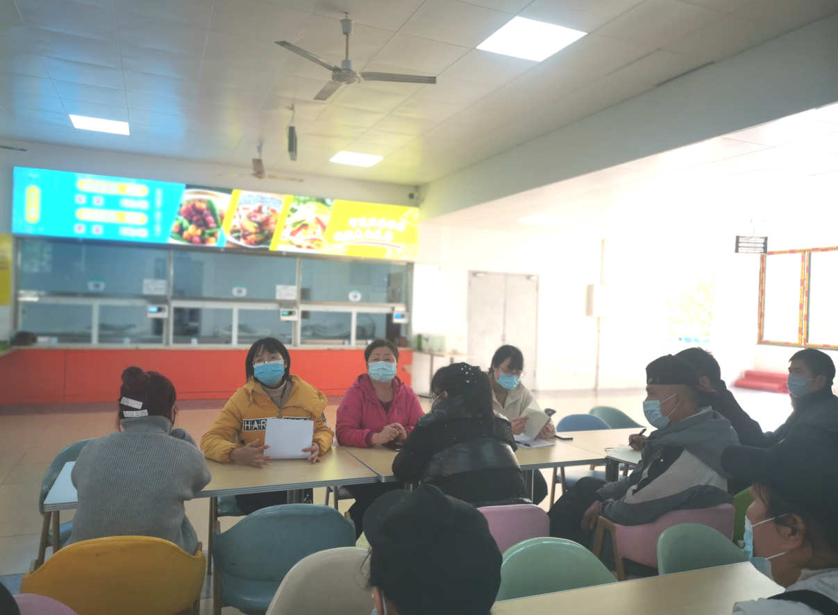 会上,杨萍结合《中华人民共和国食品安全法》《餐饮服务食品安全操作规范》及疫情防控相关要求详细讲解了食材验收、储存、加工、烹饪各环节的操作流程及注意事项,并要求所有员工严格执行到位,坚决杜绝疫情期间食堂发生食品安全事件。