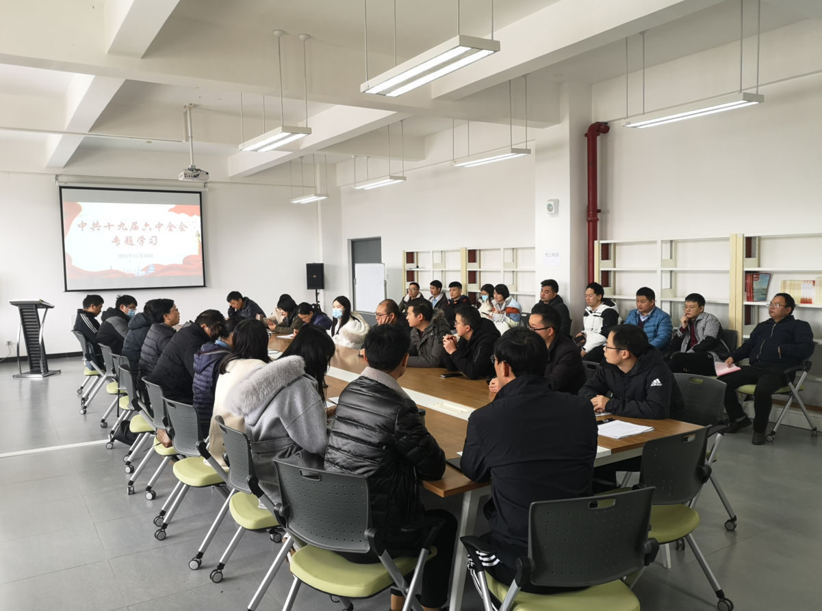 11月16日,智信学院全体教职工在经开区校区信息工程技术楼611会议室,召开学习党的十九届六中全会精神专题会。
