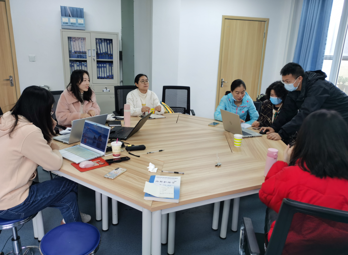 为了进一步加强基础医学与临床护理学知识点的对接,整合力量制作课程资源,11月6日,在青年路校区实训楼705工作室,护理学院专业教师与基础医学院专业教师共同探讨了临床护理学2D/3D资源建设中知识点与解剖学、病理生理学知识之间的衔接问题。