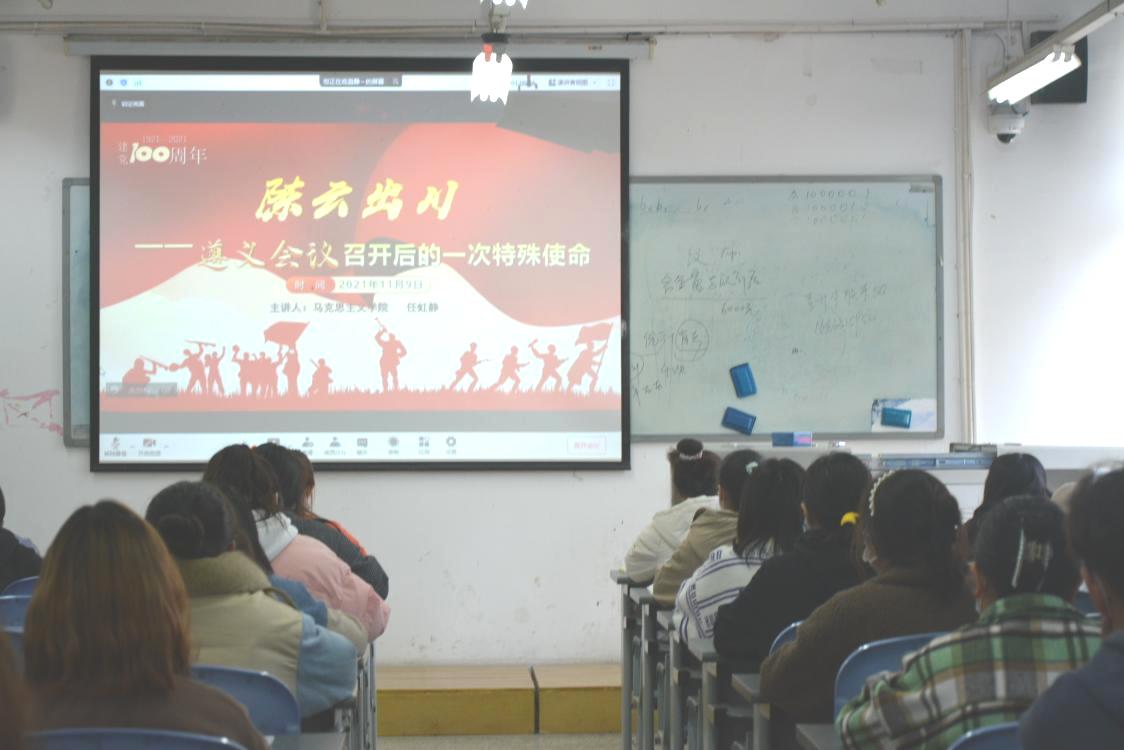 开班仪式结束后,马克思主义学院思想道德与法治教研室主任任虹静老师以“陈云出川”为题,深刻地讲述了共产党员席懋昭护送陈云同志出川的故事,她号召青年一代要珍惜来之不易的幸福生活,铭记英烈的光辉事迹,发扬先烈们艰苦奋斗、吃苦耐劳的革命精神,在新长征路上继续奋勇前进!