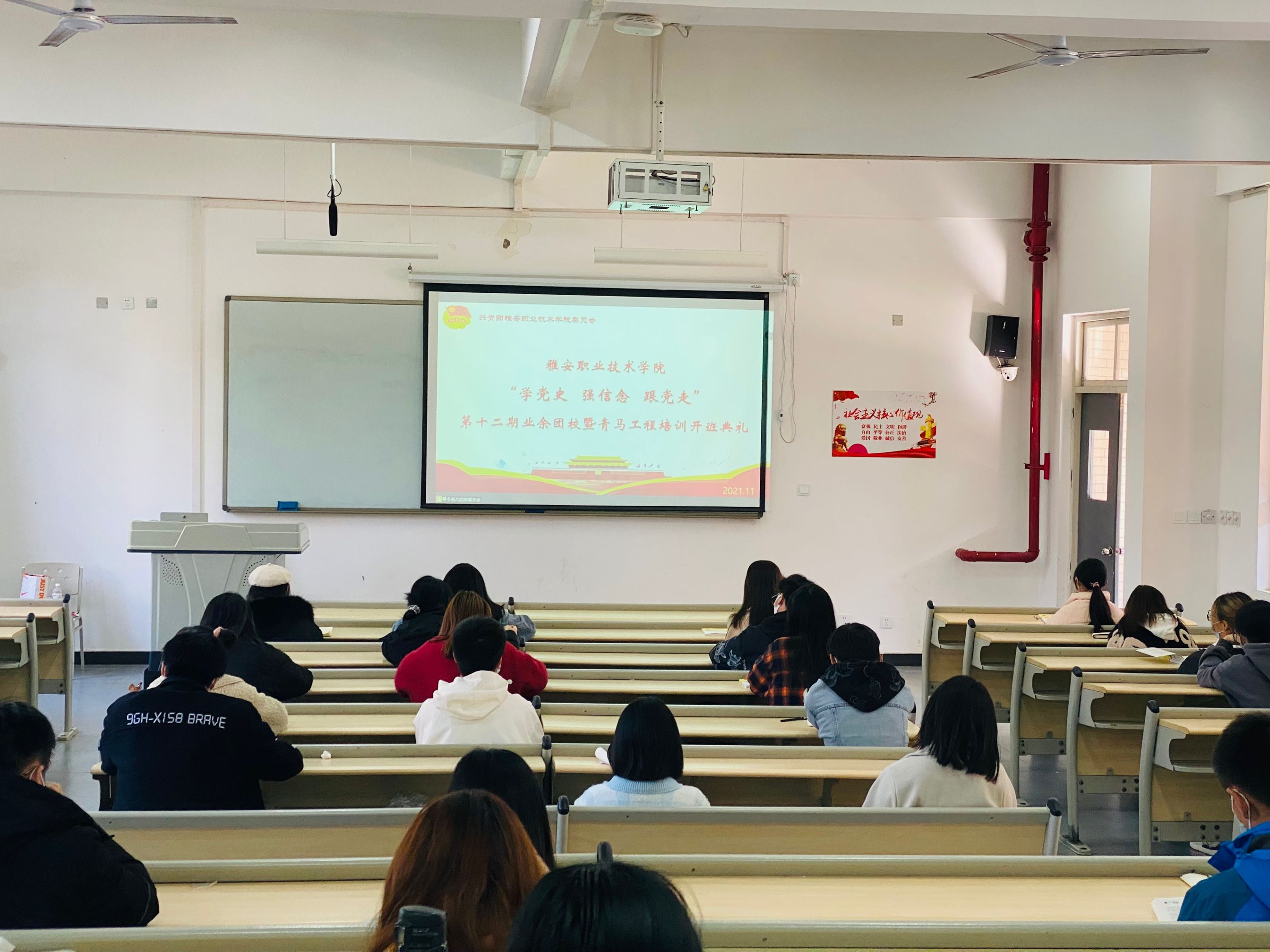 11月9日,由院团委主办的“学党史 强信念 跟党走”学院第十二期业余团校暨青马工程培训顺利开班。学院团委副书记叶芋伶出席开班典礼并讲话,学院团干及团校学员230余人参与。
