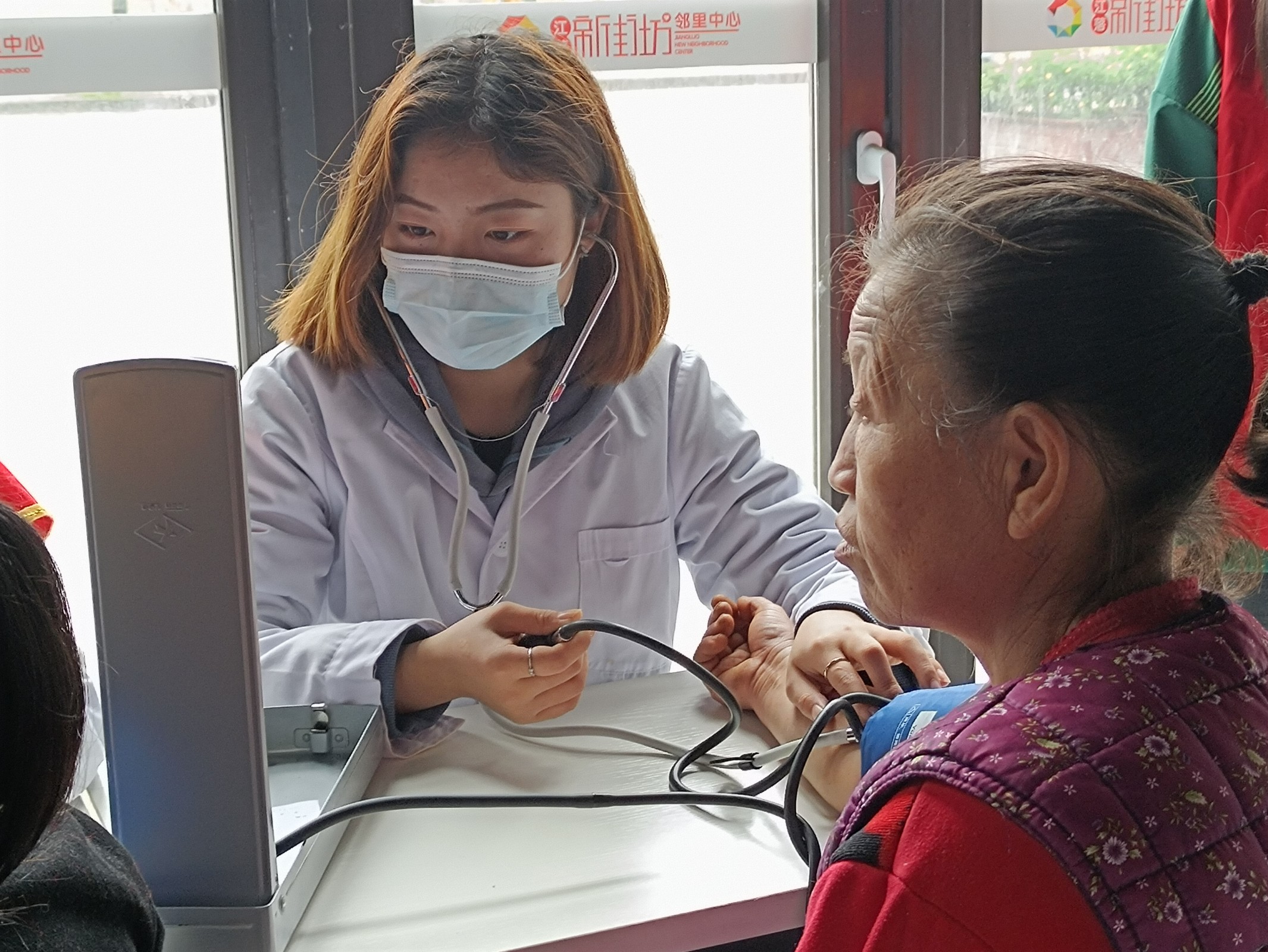 志愿者们按计划分成血压测量组、科普组和信息采集组,有序开展志愿活动。测量组的志愿者认真为社区居民测量血压;科普组的志愿者在社区周边走访宣传此次义诊活动和常见疾病预防、卫生保健、饮食安全等知识注意事项;信息采集组的志愿者主要负责现场活动中温馨瞬间的留影。前来体验的社区居民络绎不绝,志愿者给社区居民测量了血压,根据每位居民的测量结果也给了相应的生活饮食建议。