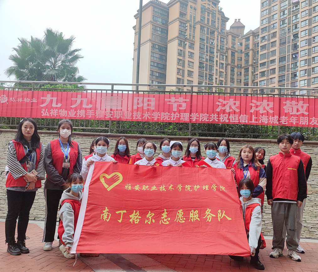 敬老传统,代代相传,10月12日,护理学院“南丁格尔 ”志愿服务队在恒信上海城小区成功开展了以“九九重阳节,浓浓敬老情”为主题的志愿服务活动。此次活动由护理学院副院长张雪庆,教师黄丹两位老师带队,30名学生参加。