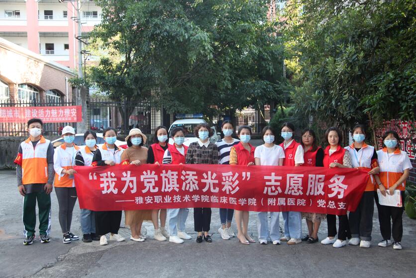 为庆祝中国共产党成立100周年,中华人民共和国成立72周年,创建文明温暖社区,9月28日,临床医学院6名志愿者跟随临床医学院(附属医院)党总支副书记宋健在雨城区建新路社区开展“我为党旗添光彩”志愿服务活动。