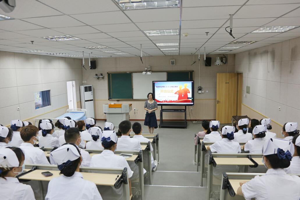 开班仪式上,胡盛琳主任介绍了产教融合的趋势、订单班教学安排及相关注意事项,并对同学们提出了成为一个高素质技能型护理人才的建议和要求,并寄予殷切期望。王静院长代表学院对与医院在联合开展1+2订单班项目班的付出表示感谢,对同学们提出了“尊敬师长,慎独自律,勤学善思,勇于创新”的要求。班级团支书刘欣宇代表全班发言,承诺一定认真努力学习,不辜负学校和医院的期望。开班仪式上还观看了医院老师们制作的欢迎订单班新同学的视频。