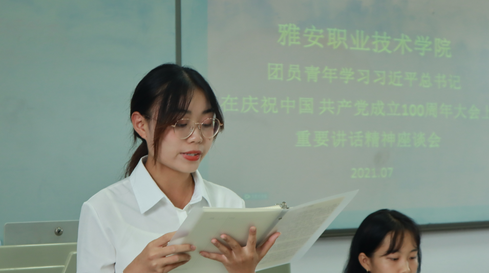 7月9日,院团委组织召开团员青年学习习近平总书记在庆祝中国共产党成立100周年大会上的重要讲话精神座谈会,来自各二级学院“两红两优”代表、学生会干部等50余名优秀团员青年参与座谈,院团委副书记叶芋伶、郭庆出席座谈会。