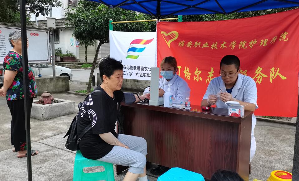 7月15日,护理学院“南丁格尔”志愿服务队分别在阳光苑小区及先锋小区开展义诊活动,为老人测量血压和血糖,并结合所学知识为老人提供健康相关建议。同学们认真负责的态度,娴熟的技术受到社区居民的一致好评。