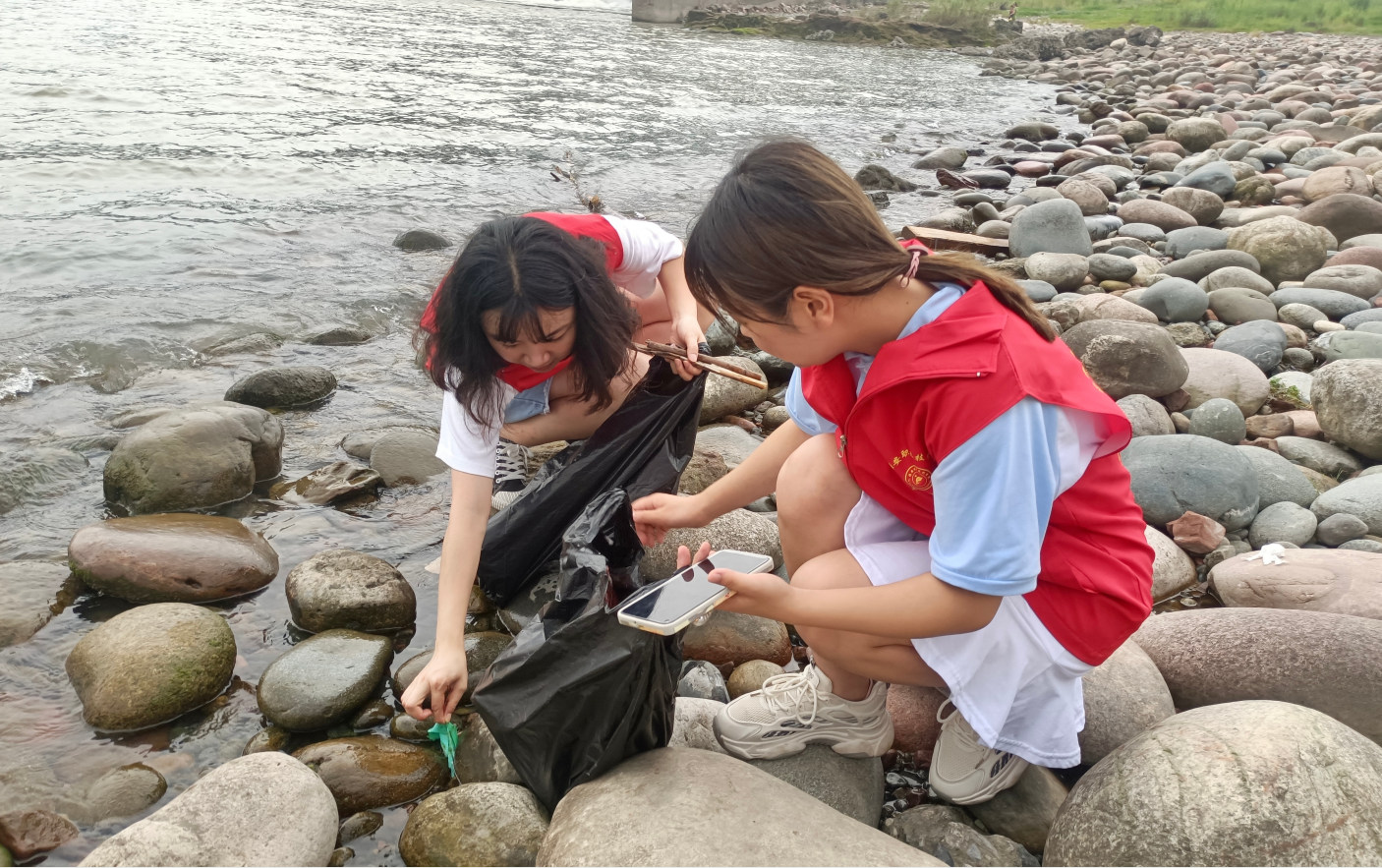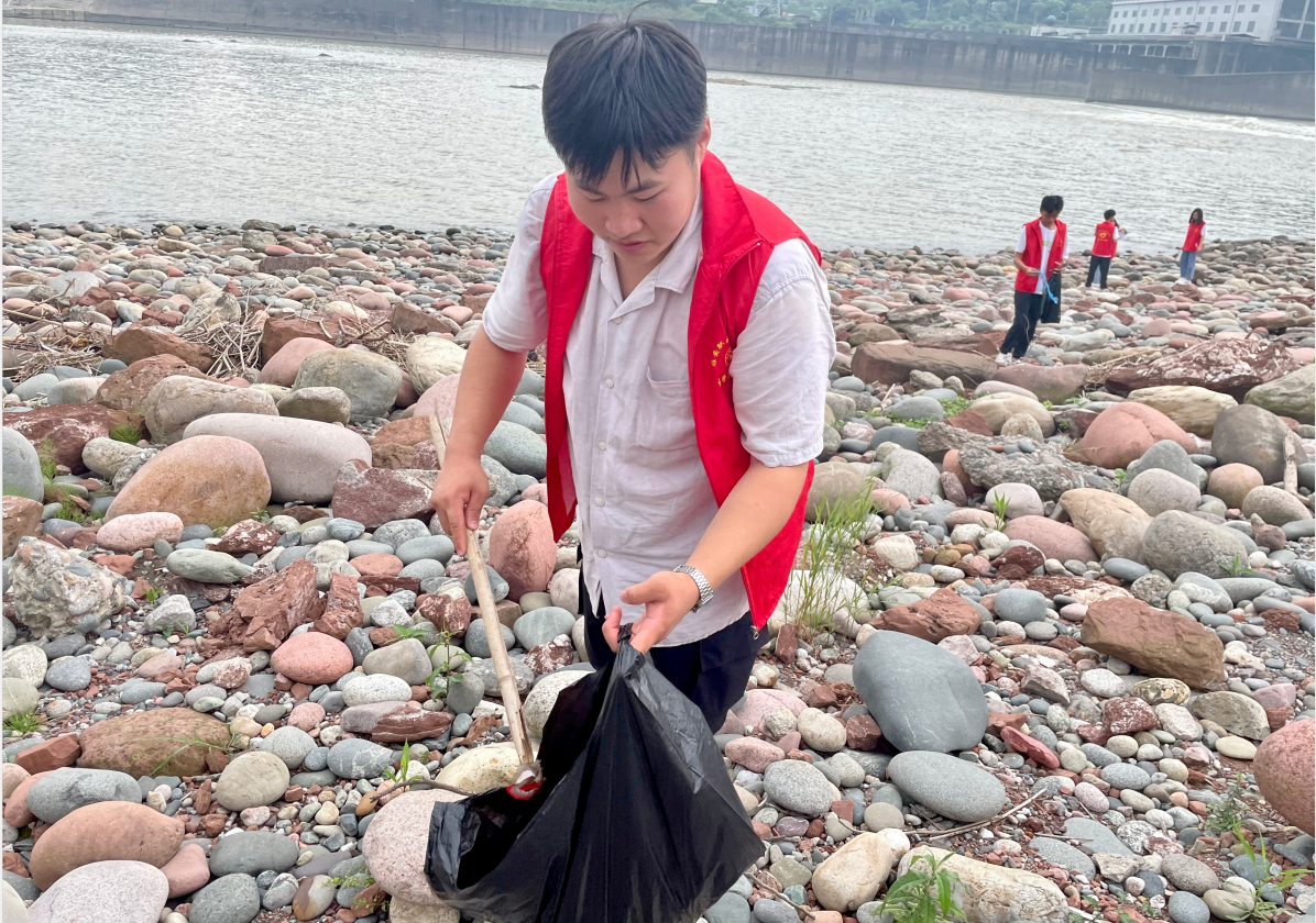 志愿者们按照区域分工协作,沿着青衣江河岸边走边看,边寻边捡。大家组织有序、分工明确,不怕脏、不怕累,对青衣江畔的沙滩、草坪及石堆死角中的垃圾进行清理。