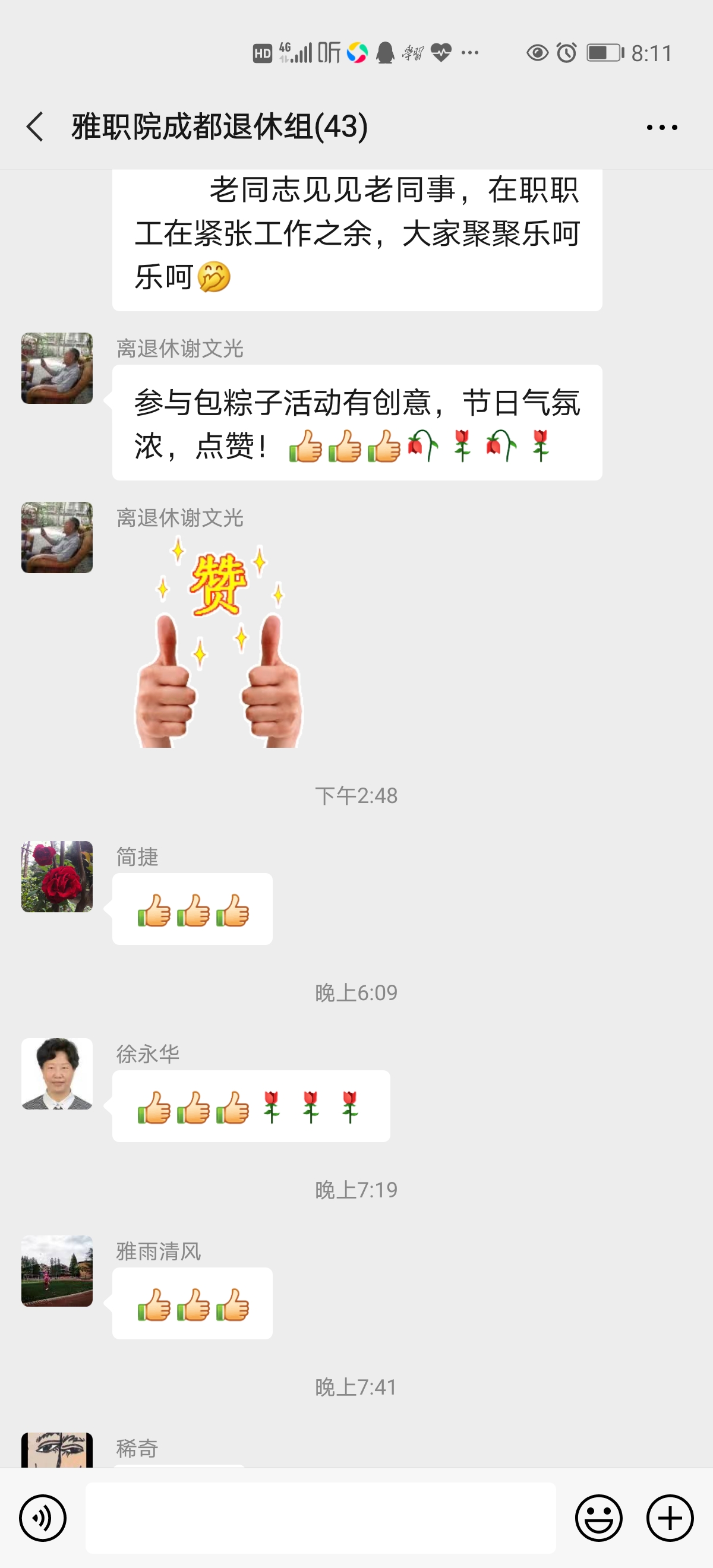 活动结束后,离退休人员工作处还将包好的粽子送到92岁的离休干部、老党员王勤管家里,恭祝老同志端午安康。离退休教职工也纷纷在微信群里分享活动照片、活动体会,并感谢学院组织这次活动,让他们老有所乐、老有所为。