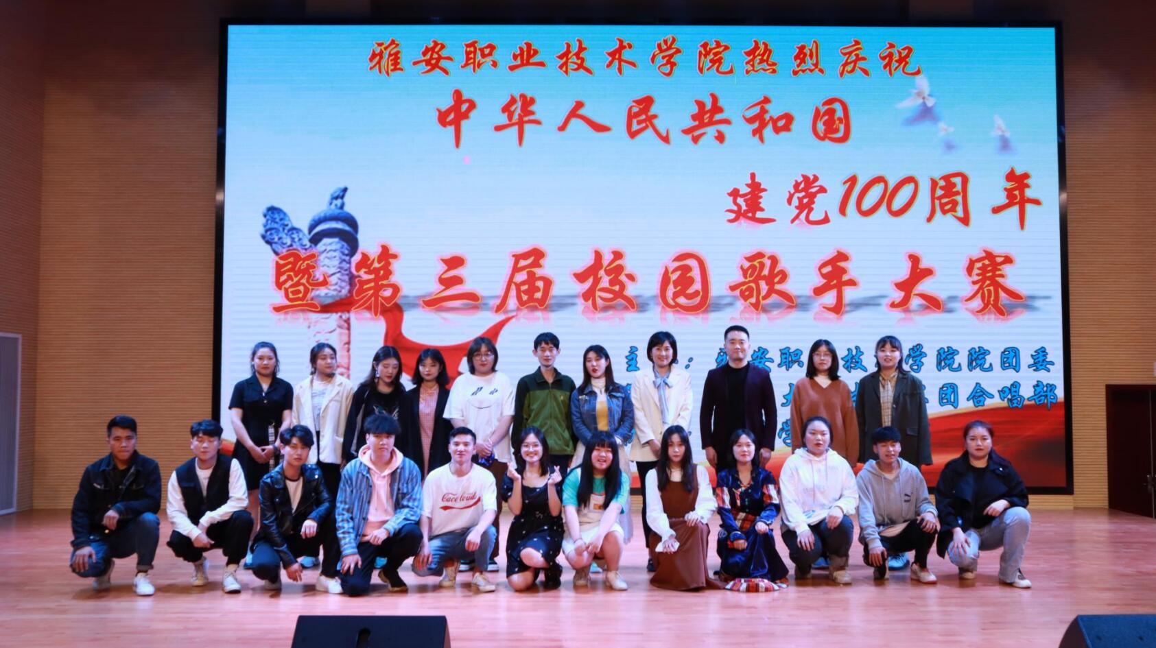 为庆祝建党100周年,热情讴歌党的百年奋斗史, 4月23日下午,由院团委主办、师范学院协办的“音乐展现梦想,旋律谱写青春”庆祝建党100周年系列活动之第三届校园十佳歌手大赛在经开区校区聚雅厅顺利举行。院团委副书记叶芋伶,师范学院团总支书记蔡小龙、教师王珏玉、左习成,院团委教师刘舰硚、江俞希、石雨田出席本次大赛并担任评委,300余名同学现场观看比赛。
