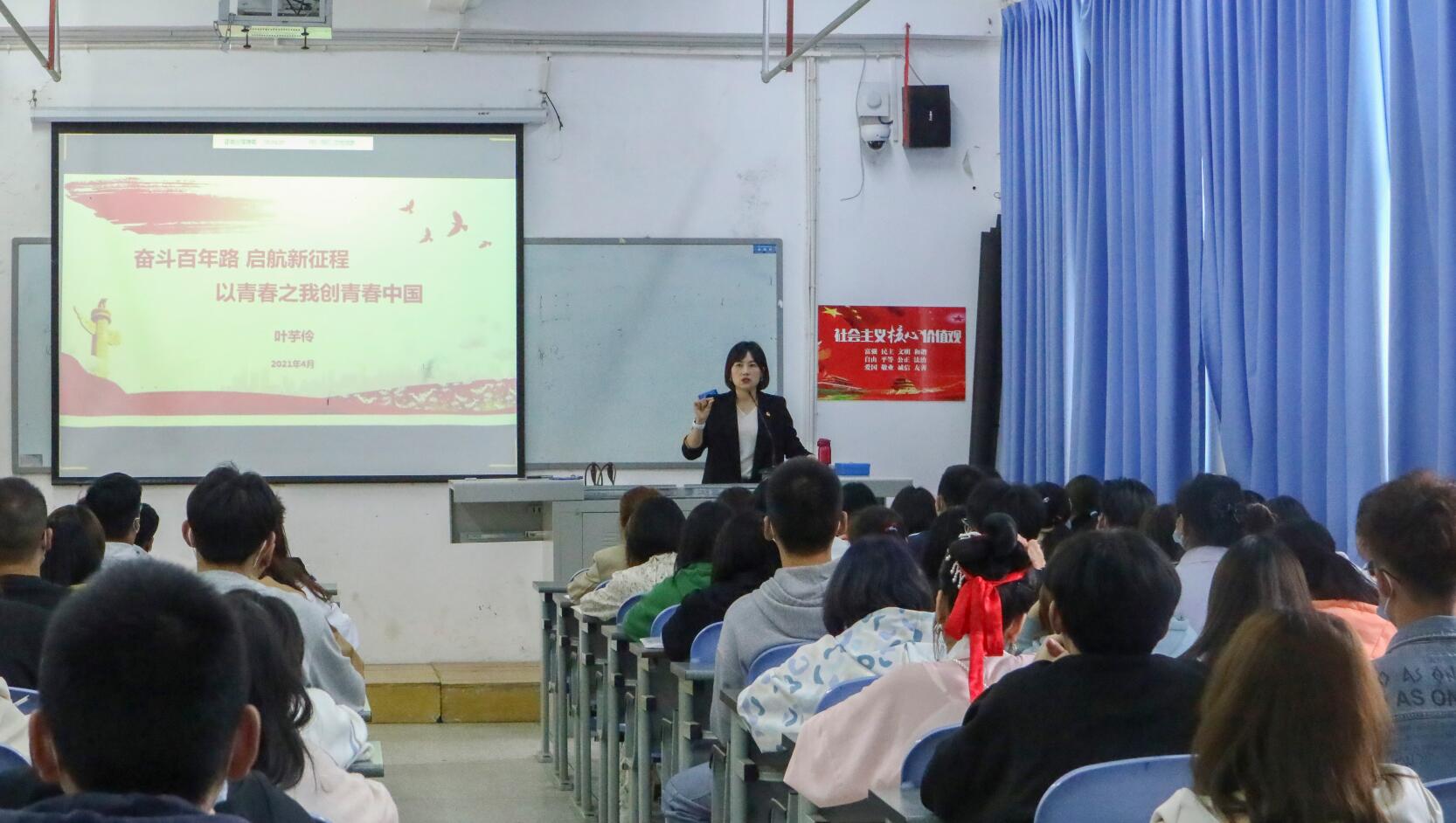 为进一步深化“党史”学习教育,引领广大团员青年学党史、强信念、跟党走,4月20日,院团委副书记叶芋伶为第十一期团校学员带来题为《奋斗百年路,启航新征程——以青春之我创青春中国》的“党史”专题讲座,团校学员240余人参与学习。