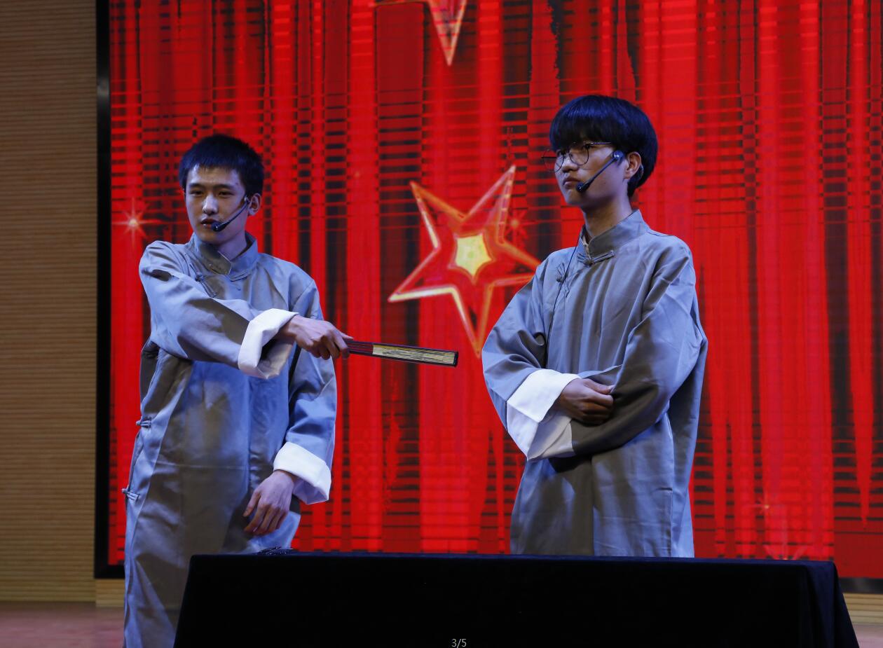 晚会在主持人激情高昂的开场中拉开序幕,宋立智在讲话中激励同学们要坚定理想信念,紧跟时代发展,发扬五四精神,鼓励大家筑梦征程,青年先行。同学们以舞台为纸,以表演为笔,诗歌朗诵、相声、乐器演奏、歌舞表演精彩节目一个接一个,形式新颖、内容丰富,且具有时代性的表演,掀起场内一波波的高潮,也诠释着新时代青年们热血高昂,不畏艰难,积极上进的精神。