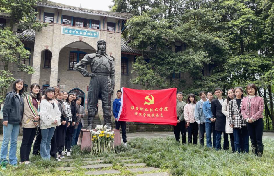 4月1日,师范学院党总支党员教师代表20余人在西康博物馆开展“学党史、守初心、育新人”党史专题学习会。伴随着蒙蒙的细雨,朗朗的颂诗声在雅安市雨城区西康博物馆前响起,师范学院党总支副书记陆小路带领党员教师在保卫南京空战中壮烈牺牲的雅安市芦山籍烈士乐以琴塑像前进行了深情的诗朗诵,并向烈士敬献鲜花,表达对革命先烈深切的缅怀之情。