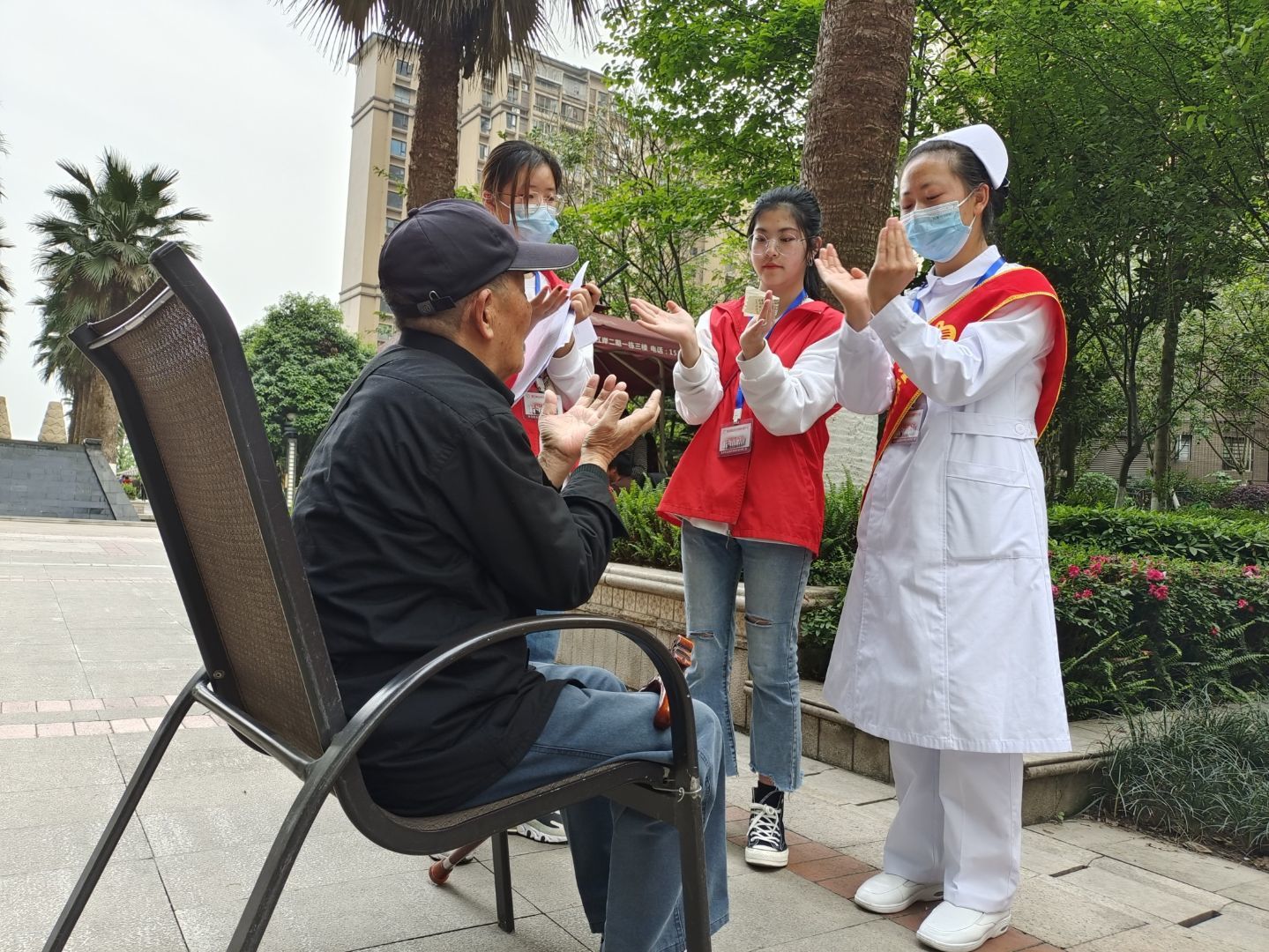 3月30日,护理学院“南丁格尔”志愿服务队18名志愿者在任冬梅老师带领下在第一江岸小区和先锋小区开展了“关注老化,爱在小区”为主题的爱心义诊活动。