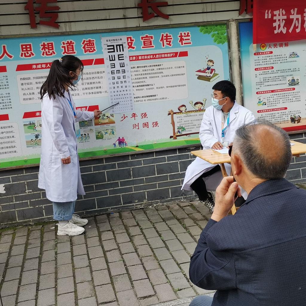 志愿者分为两组开展工作,医疗组负责测血糖、测血压、康复推拿、视力检查,高血压基础护理、白内障预防知识普及。宣传组则积极配合社区工作,推广社区义诊微信群、发放志愿者自制的健康知识宣传单,高龄老人信息采集、新冠疫苗接种通知宣传资料。