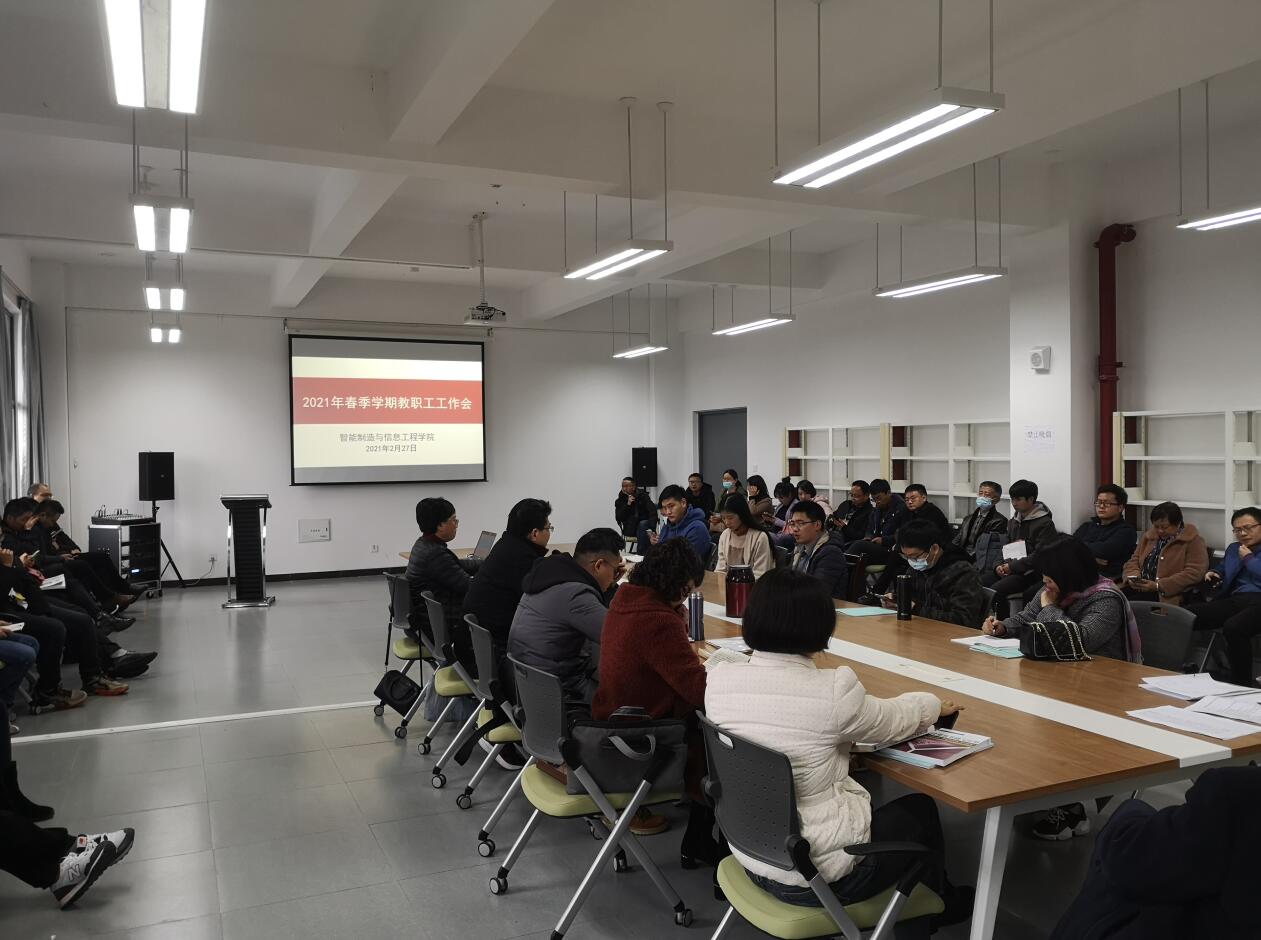2月27日,智信学院在经开区实训与服务中心信息工程技术楼611会议室召开2021年春季学期开学工作会。智信学院全体教师及联合办学企业教师参加,会议由智信学院院长王梅主持。