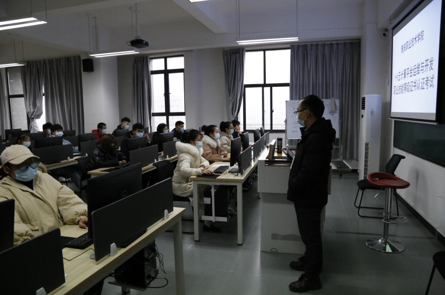 12月26日,智信学院在经开区实训与服务中心信息工程技术大楼五楼开展首批“云计算平台运维与开发”1+X证书考试,共有大数据技术与应用专业25名学生参加此次考试。考试由智信学院负责组织实施,南京第五十五所技术开发有限公司全程对接指导考试工作。