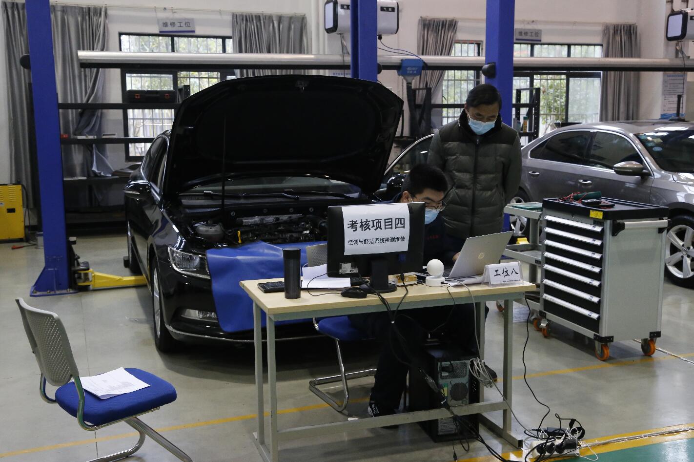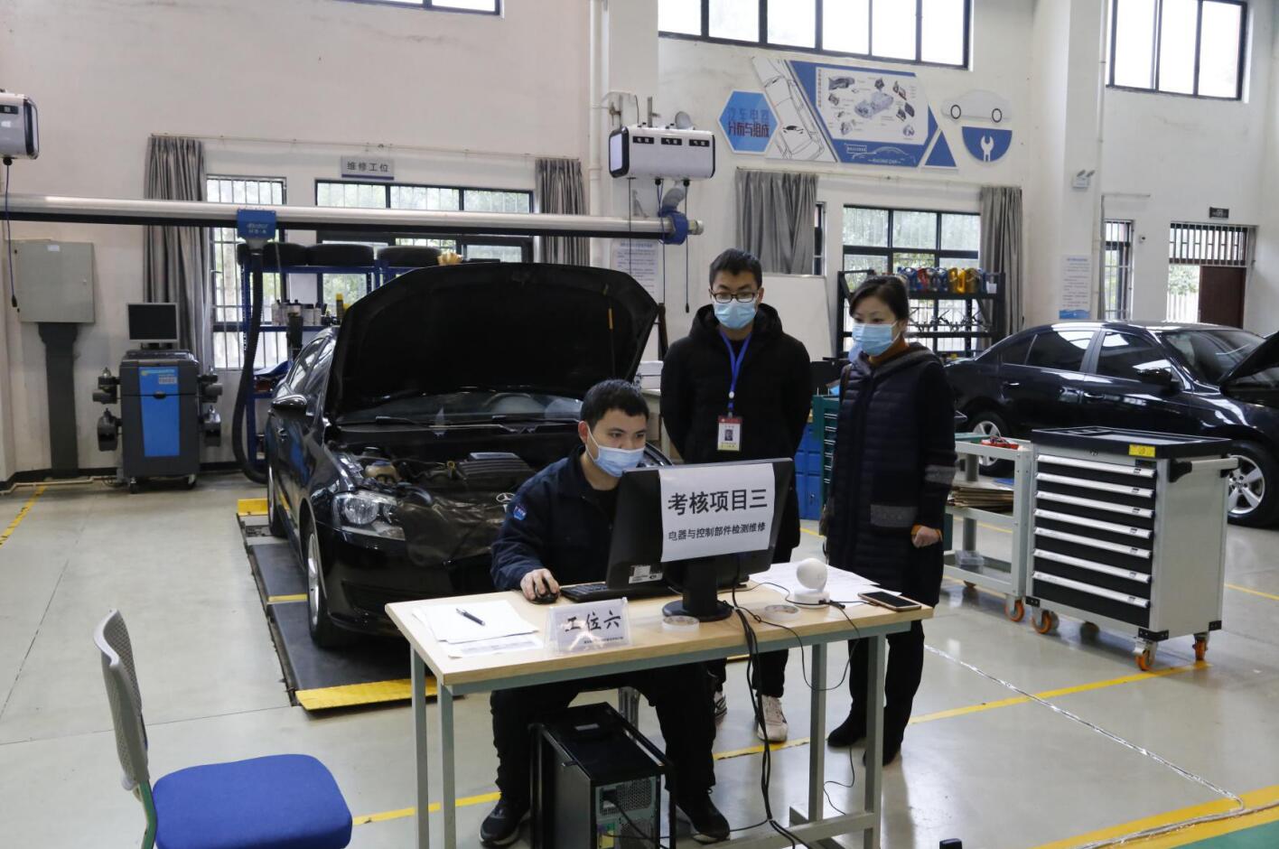 2020年12月12日至13日,汽车专业领域1+X证书试点院校考评在经开区汽车维修车间举行。本次考评共30名学生参加,考核模块是汽车运用与维修项目——汽车电子电器与空调舒适系统技术。