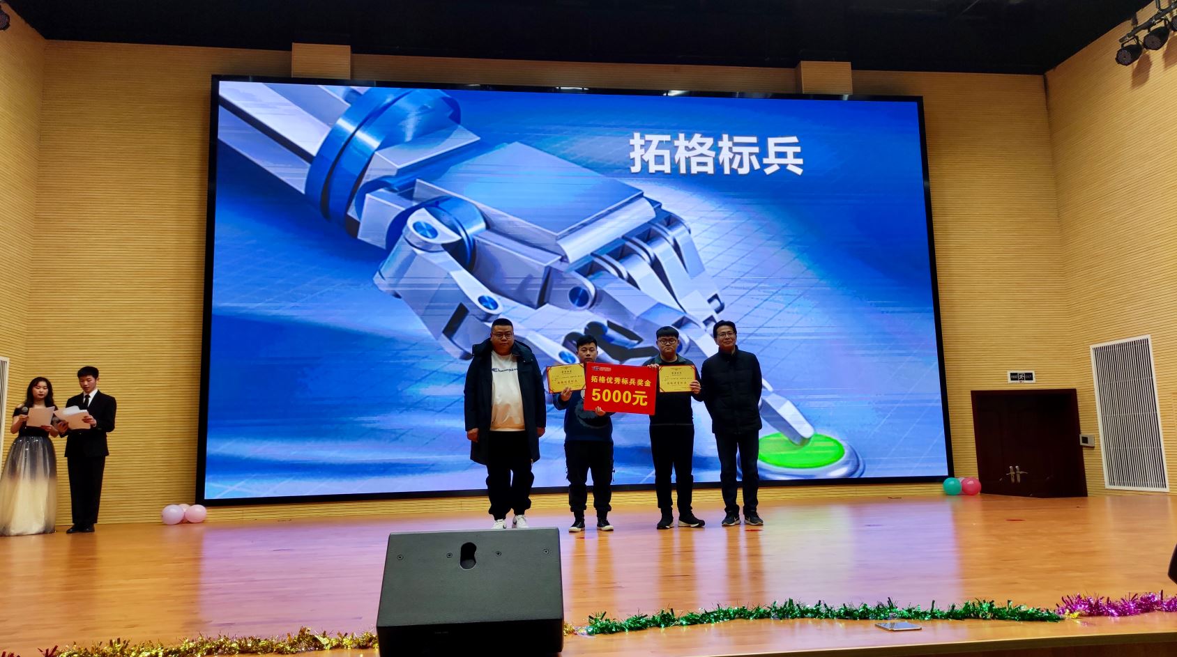 11月27日晚,智信学院与四川拓格机器人科技有限公司联合举办的工业机器人技术专业2020迎新暨“拓格杯奖学金”颁奖晚会在学生活动中心隆重举行。学院党委委员、智信学院党总支书记宋立智、智信学院院长王梅,党总支副书记唐翠微,四川拓格机器人科技有限公司总经理范泽安、技术总监蒲东清以及相关专业教师、辅导员等出席晚会。