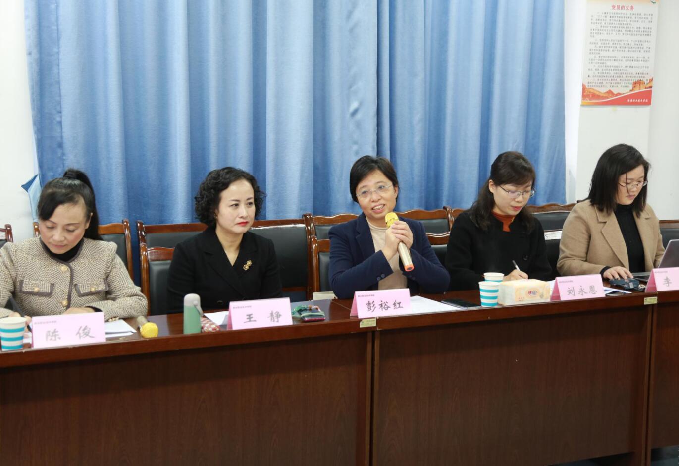 彭裕红肯定了护理名师工作室自成立以来的各项工作及成果,之后向旅游管理及学前教育名师工作室成员介绍了学院发展简史及现状,传递“大健康理念”,提出要落实大健康理念必须加强各专业、各地区的相互合作。
