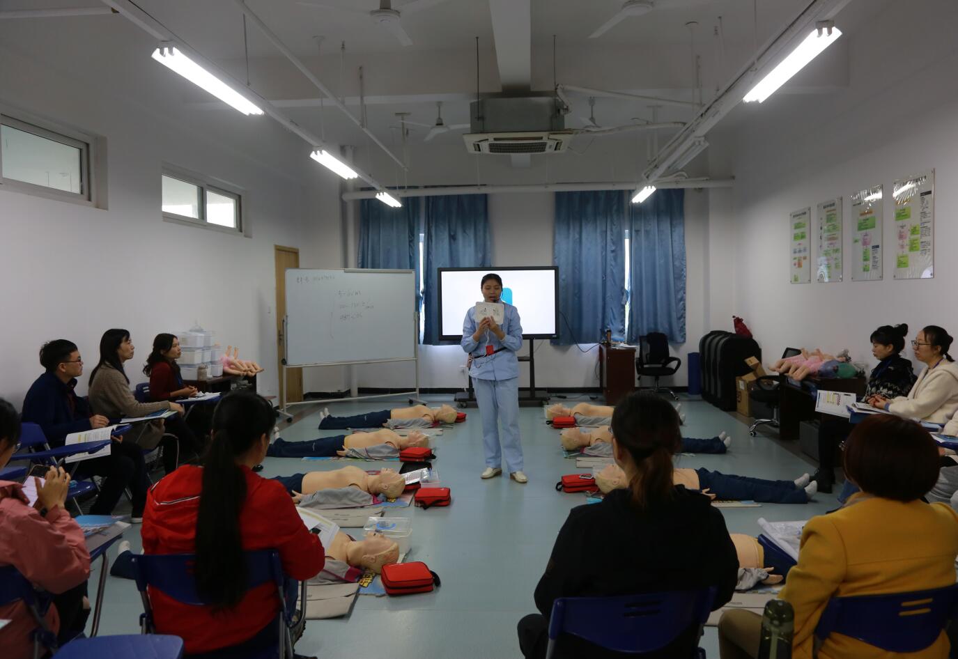 本次HS培训时间为一天,培训内容包括对成人、儿童、婴儿的心肺复苏实操,窒息处理,各种内科、创伤急症的紧急处理。在整个培训过程中,所有教师都积极练习,与培训导师探讨学习,并顺利完成所有考核。