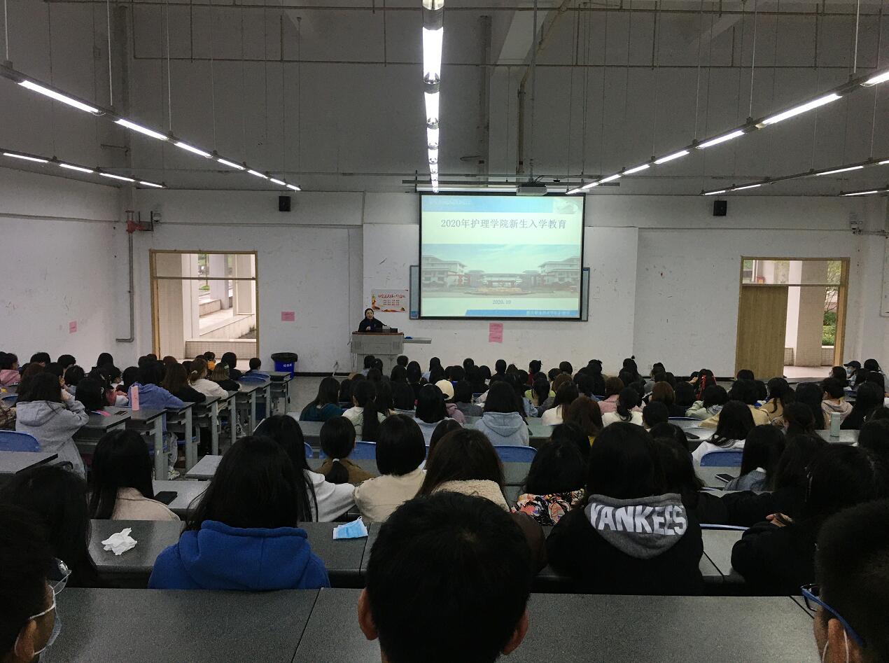 10月27日,护理学院在青年路校区实验实训二楼汇雅厅及图阶102分批开展了2020级新生入学教育。新生辅导员及1200余名新生参加入学教育。入学教育由护理学院院长王静、党总支书记姚婕主讲。