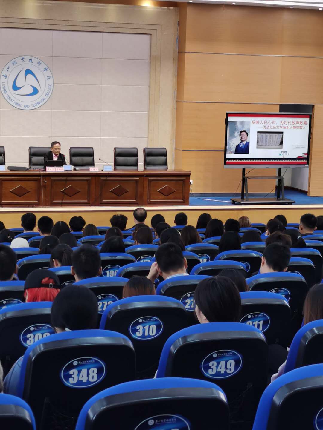 罗大佺从老一辈革命文艺家贺敬之先生积极创作反映人民心声,为时代放声歌唱的文艺作品出发,介绍了贺敬之先生在担任国家宣传文艺界重要领导职务期间,对中国文艺事业的发展所作出的卓越贡献以及在现实生活中贺敬之先生如何平易近人、扶持文学新人等方面,生动展现了这位现当代文坛大家的高尚情操和道德风范。在新时代,我们更需要继承和弘扬红色文学。乐山职业技术学院300余名师生聆听了讲座。
