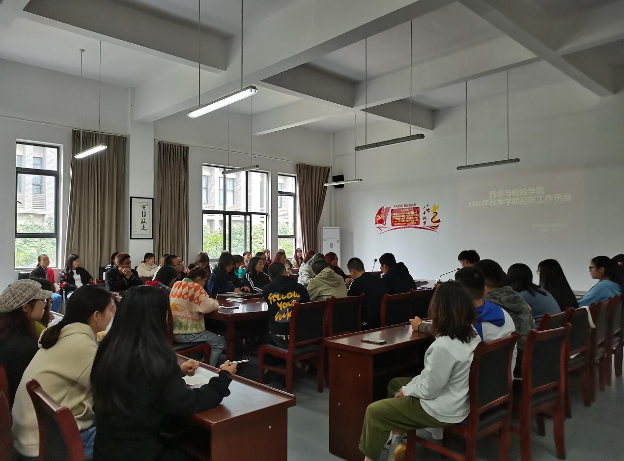 金秋十月,与你相遇。为让即将到来的新同学们尽快熟悉药检院大家庭氛围,迎新工作能够有序完成,药学与检验学院于10月9日中午12:40在食品加工实训楼2楼205会议室开展了2020年秋季学期迎新工作例会,参加例会的有药检院党总支书记杨泽刚、团总支副书记陈静和志愿者们,共计60人。