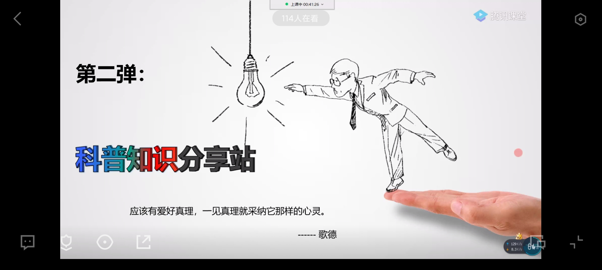 9月25日,护理学院通过腾讯课堂开展了“讲科学、爱科学、学科学、用科学”科普活动。共有200余名同学参与。