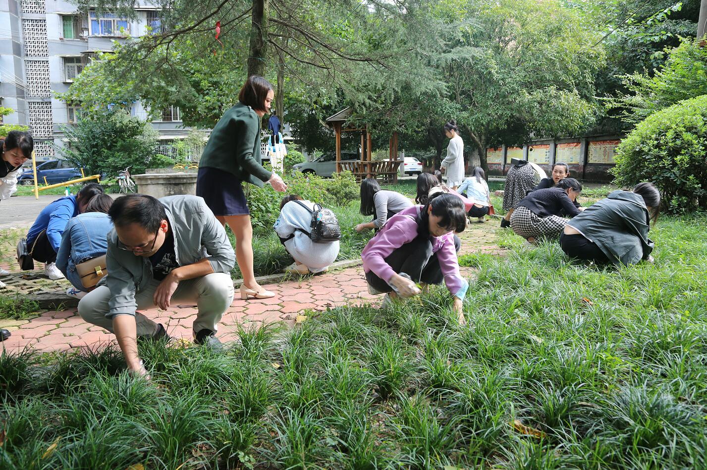 最后,教师志愿者清理了社区的垃圾,着重将花园里影响居民通行和社区美观度的过道、台阶处杂草进行了拔除。