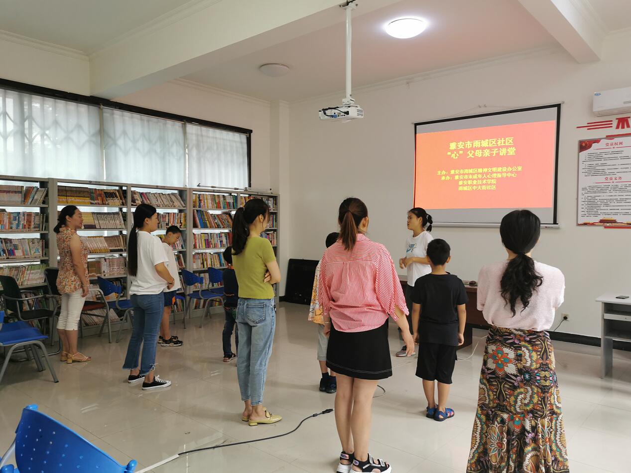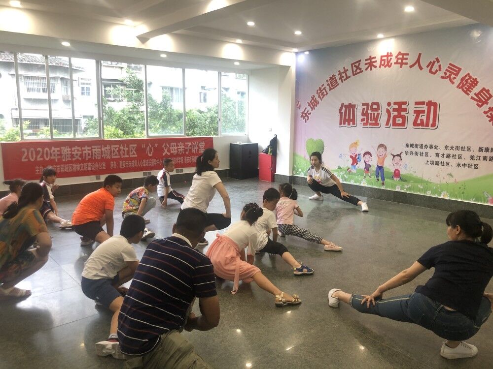此次活动由雅安市未成年人心理成长指导中心执行主任、思政部主任李霓带队,学院心理教师王丽、侯述娟、职业生涯规划师王坤容、体育教师何莉开展了不同类型的亲子主题活动,共9场,雨城区20个社区召集辖区内居民积极参与,共计100人左右。