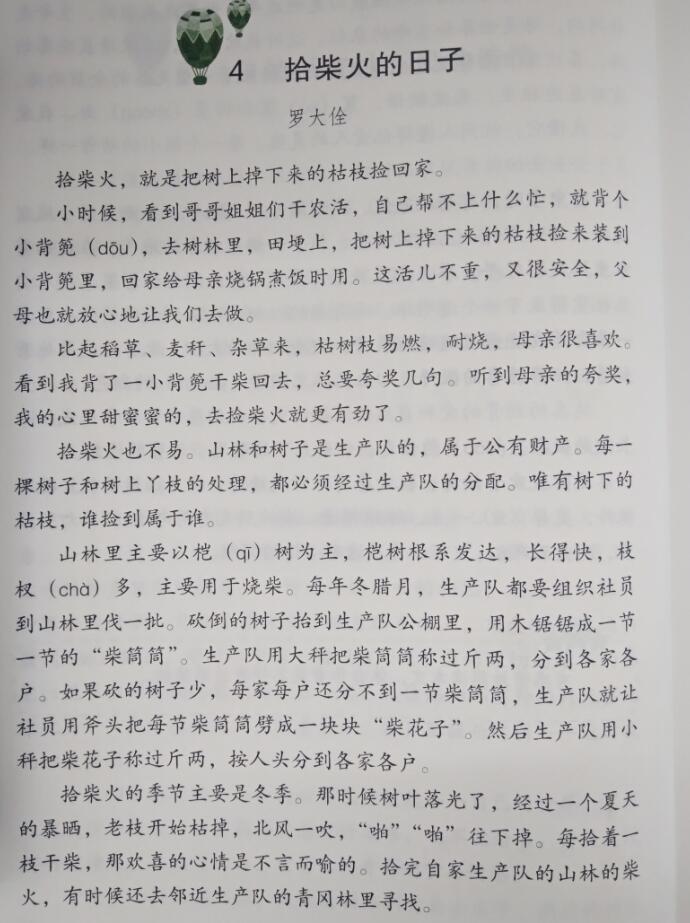 最近,学院图书馆馆长罗大佺的散文《拾柴火的日子》入选小学四年级下册义务教育教科书《语文同步读本》,该教材由语文出版社教材研究中心编写,由语文出版社出版,是小学四年级学生的必读书目,影响广泛。