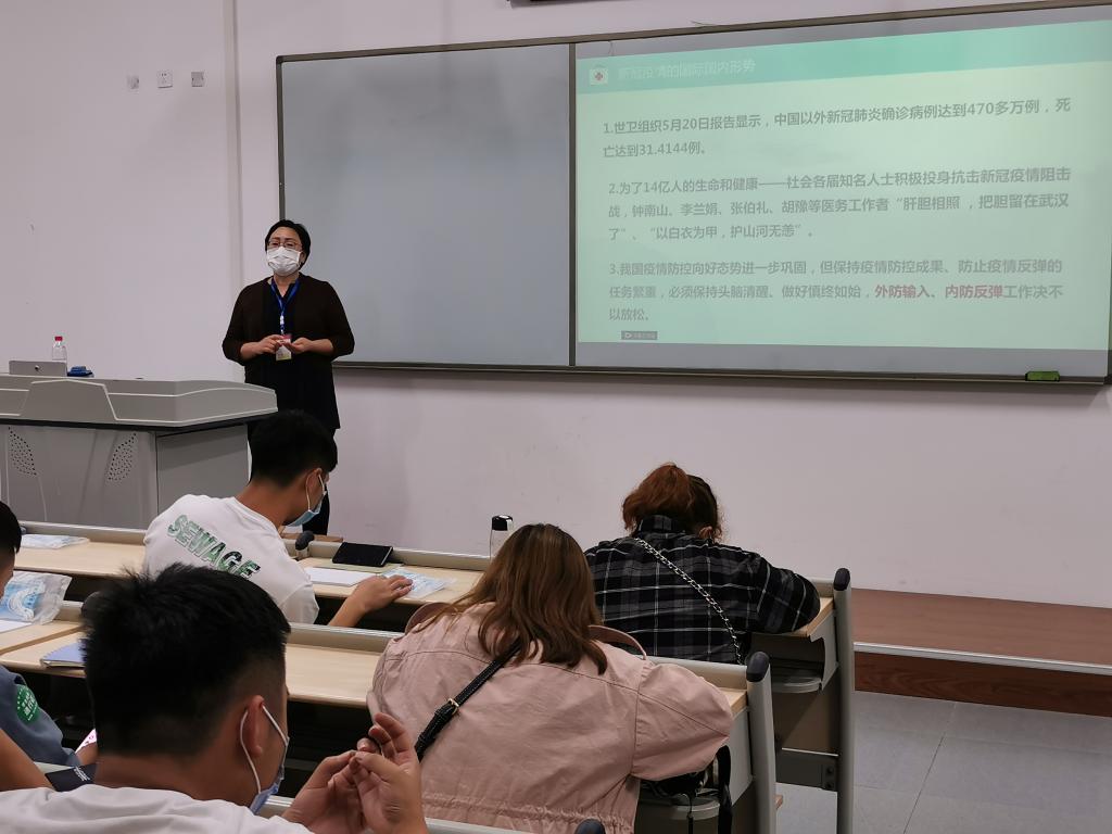 5月25日晚,班级责任人各就其职,分别为智信学院19个班级609名返校学生开展了疫情防控健康教育专题讲座。班级责任老师以如何有效进行疫情防控为主题,对学生进行爱国主义、科学自我防护、心理健康教育等讲授,帮助学生增强疫情防控意识、掌握防控知识、明晰防控流程、提高返校后的疫情防控能力,积极引导学生关注自身心理健康、保持昂扬向上的精神面貌,确保身心健康。
