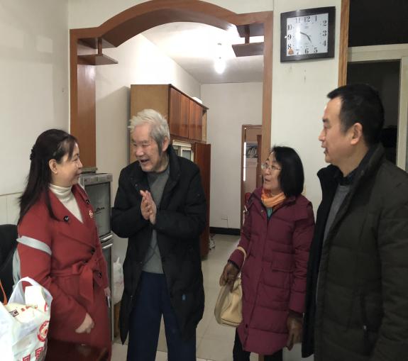 1月19日下午,春节前夕,陈明、陈明霞、卫莉玲、彭丽媛代表民盟学院支部、附属医院支部,看望84岁的王锡江老同志。四位同志与王锡江老师进行了亲切交流,了解最近一年王老师的身体、生活情况,衷心祝愿王老师春节快乐,健康长寿!王老师非常高兴,再三感谢两个盟支部的探望!