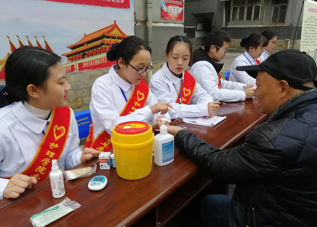 12月24日,护理学院青志协24名志愿者在先锋小区开展了以“冬日送暖阳,义诊进社区”为主题的爱心义诊活动。