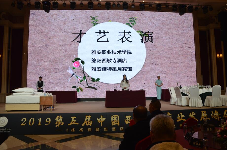 会上,茶艺展示、中餐宴会创意摆台以及中式铺床同台表演的创新茶艺。雅职学子娴熟的技巧和高超的技艺赢得了台下同行热烈的掌声。两位同学的长嘴壶茶艺以扎实的基本功和飘逸灵动的身法得到了大家的肯定。